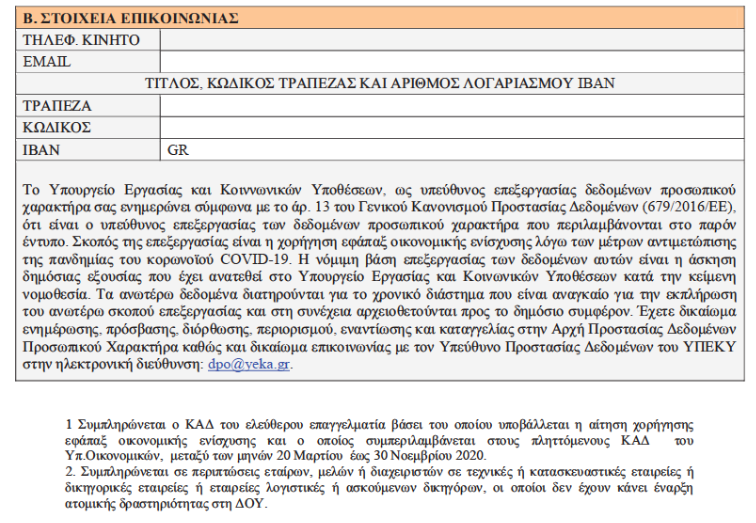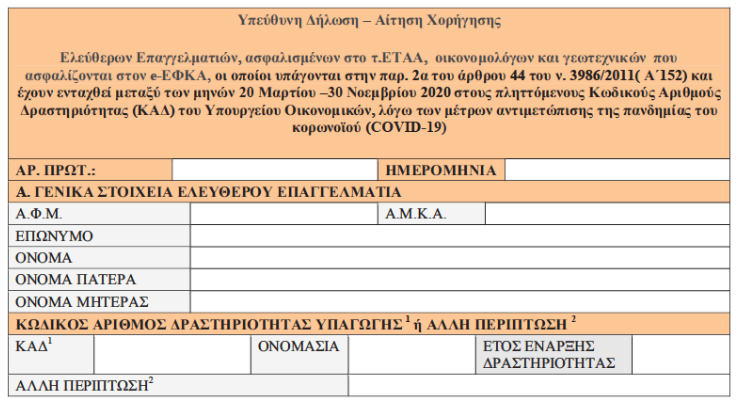 Καθορίζεται η αίτηση για τη χορήγησης της οικονομικής ενίσχυσης καθώς και η καταληκτική ημερομηνία