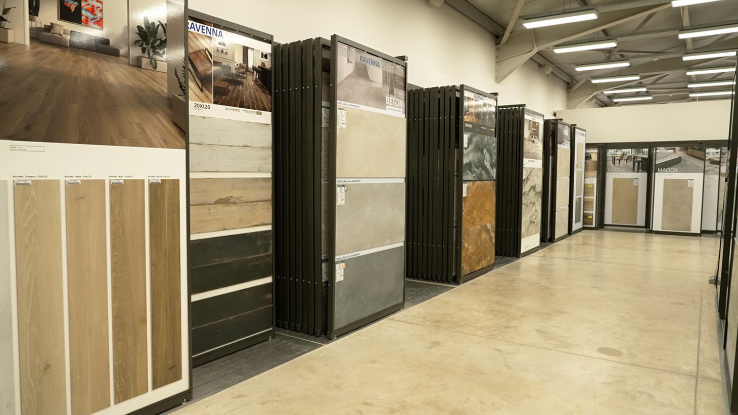Στις υπερσύγχρονες εγκαταστάσεις 3.000m2, που βρίσκονται στο 6ο χλμ. της Π.Ε.Ο. Ηρακλείου – Αγ. Νικολάου, θα βρείτε μια τεράστια συλλογή σε πλακάκια, είδη υγιεινής, πατώματα laminate αλλά επίσης έπιπλα και φωτιστικά, ετοιμοπαράδοτα και στις γνωστές τιμές RAVENNA.
