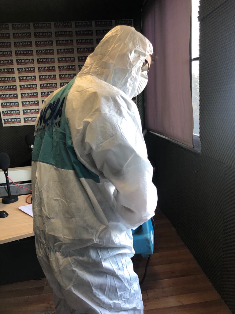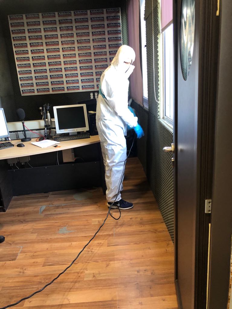 Χρησιμοποιώντας ειδικά σκευάσματα, εγκεκριμένα από τον Ε.Ο.Φ. που αξίζει να αναφέρουμε ότι είναι άοσμα , άχρωμα και δεν αφήνουν κανένα υπόλειμμα σε επιφάνειες ή χώρους προχώρησαν στην απολύμανση των χώρων που βρίσκονται οι Ρ/Σ Politica 89,8, Athletic Radio 104,2, Sfera 98,7 και Derti 107,7 και με την επαγγελματικότητα που τους διακρίνει το αποτέλεσμα ήταν άψογο.