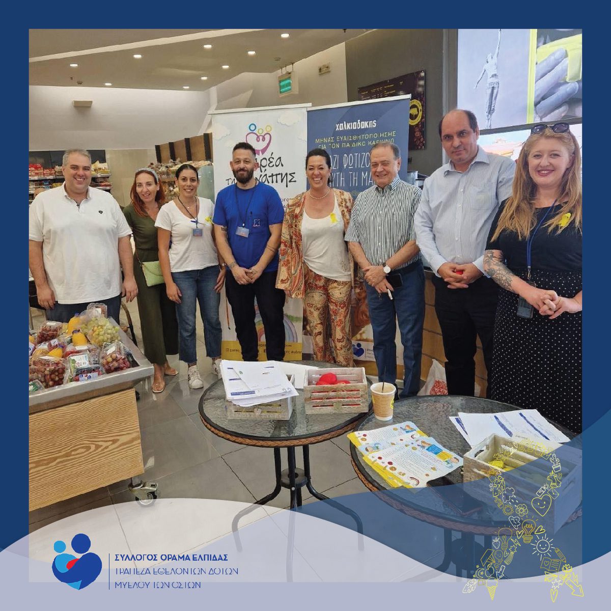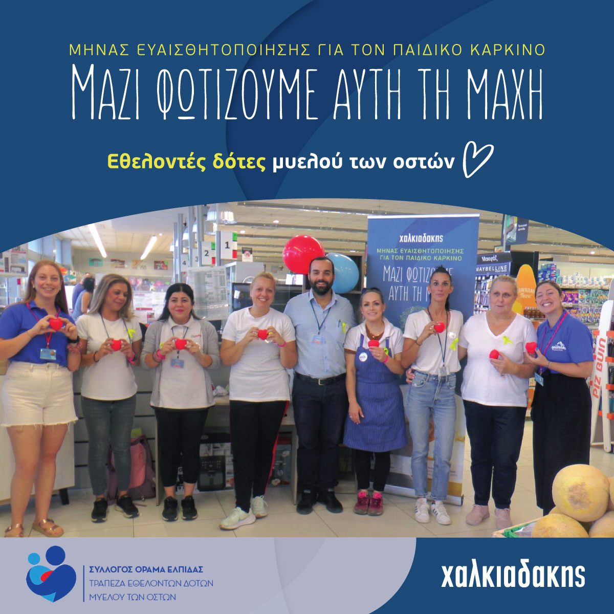 Πάνω από 5.000 επισκέπτες των super markets Χαλκιαδάκης είδαν το σχετικό ενημερωτικό υλικό στα καταστήματά μας, πολλοί εκ των οποίων ενημερώθηκαν λεπτομερώς από εθελοντές του ΟΡΑΜΑΤΟΣ ΕΛΠΙΔΑΣ για τη σπουδαιότητα της δωρεάς και της υποστήριξης των παιδιών που μάχονται τον καρκίνο. Η ανταπόκριση του κόσμου ήταν συγκινητική, αποδεικνύοντας για άλλη μία φορά την αλληλεγγύη της τοπικής κοινωνίας προς τους μικρούς μαχητές.