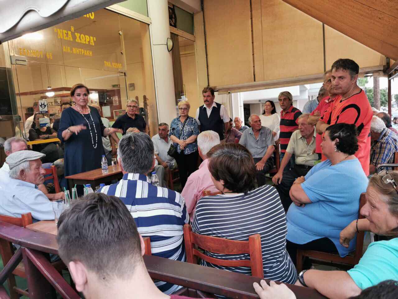 Η βουλευτής της ΝΔ και υποψήφια βουλευτής Χανίων Ντόρα Μπακογιάννη επισκέφθηκε χθες τα Παχιανά και είχε την ευκαιρία να συνομιλήσει με τους κατοίκους. «Στις επόμενες 12 ημέρες δουλεύουμε για μία μεγάλη πολιτική αλλαγή που έχει ανάγκη ο τόπος.