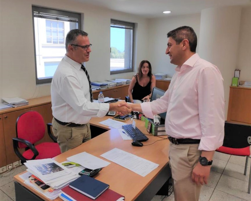 Επίσκεψη πραγματοποίησε σήμερα το πρωί, Τρίτη 25 Ιουνίου 2019, ο Γραμματέας ΠΕ της ΝΔ και υποψήφιος Βουλευτής Ηρακλείου, κ. Λευτέρης Αυγενάκης, στο κεντρικό κατάστημα της Παγκρήτιας Τράπεζας, όπου και συναντήθηκε με τον Πρόεδρο και Διευθύνων Σύμβουλο της Παγκρήτιας Συνεταιριστικής Τράπεζας, κ. Νικόλαο Μυρτάκη, την Σύμβουλο Διοίκησης της Τράπεζας, κα Χρυσάνθη Παπαδοπούλου, τον Β΄ Αντιπρόεδρο κ. Γιώργο Κουρλετάκη καθώς και εργαζομένους του καταστήματος.