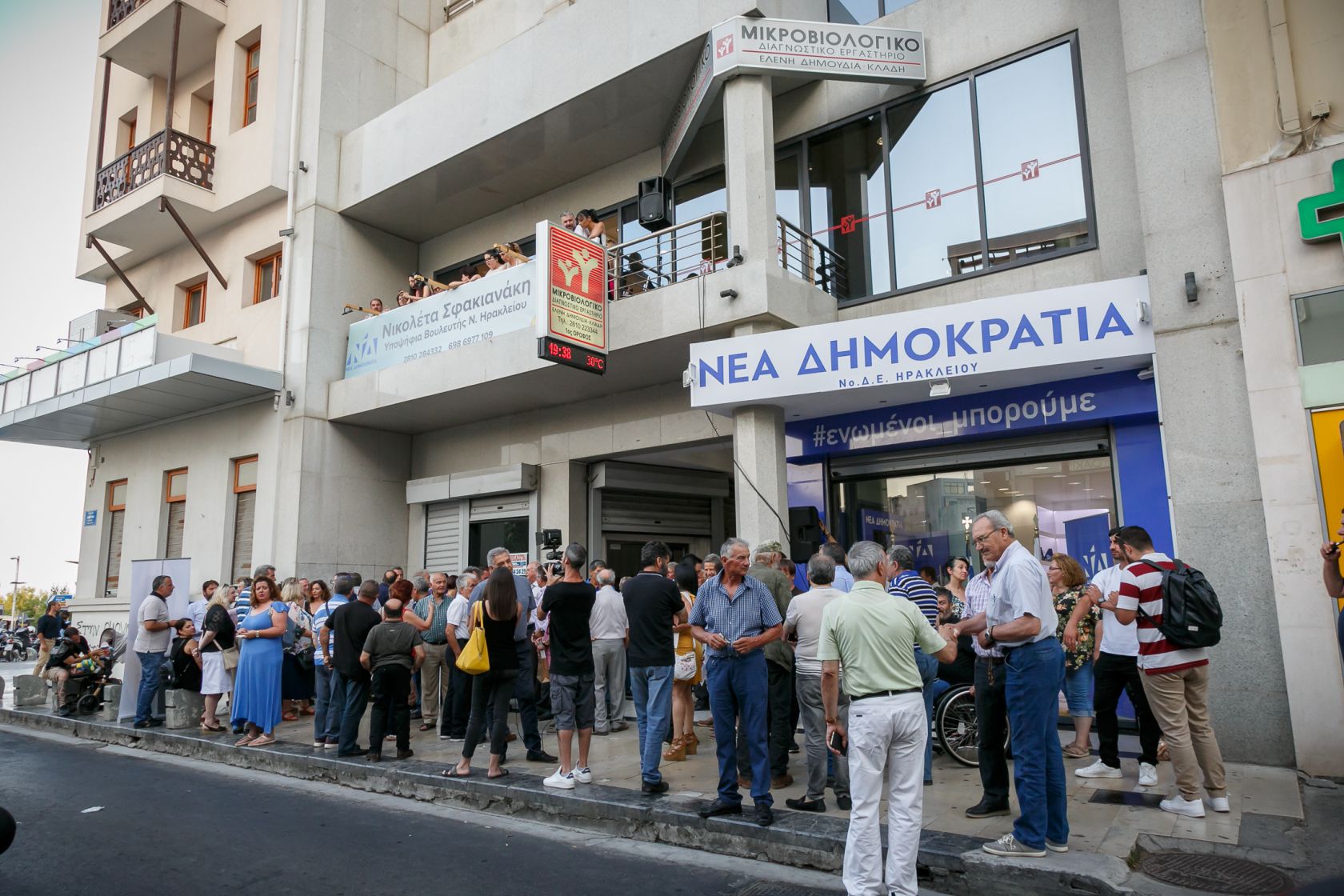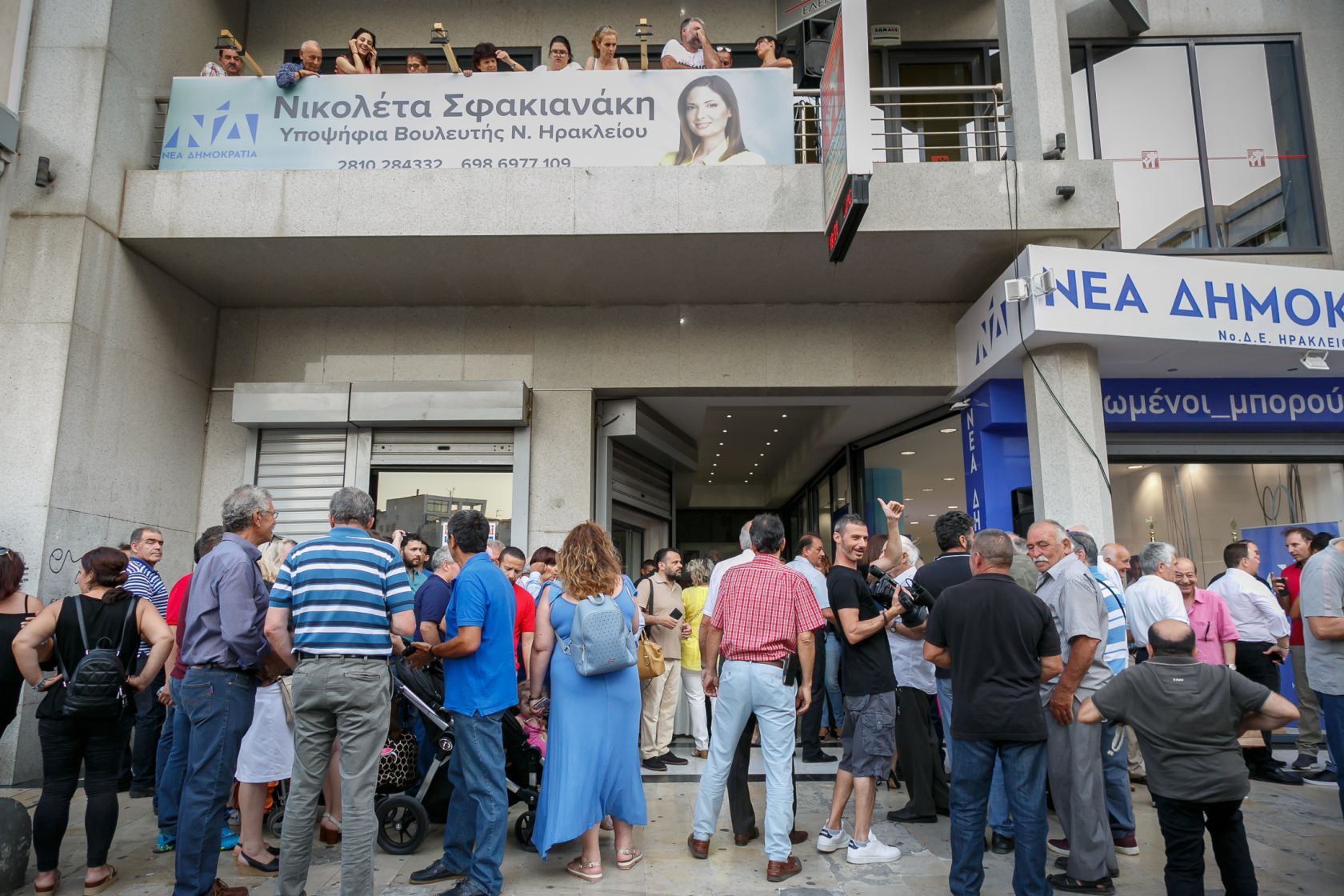 Πλήθος κόσμου παρευρέθηκε στην τελετή εγκαινίων του πολιτικού γραφείου της υποψήφιας βουλευτή της ΝΔ, Νικολέτας Σφακιανάκη στην οδό Αβέρωφ 1, στο Ηράκλειο, τα οποία πραγματοποιήθηκαν λίγο μετά τις 8.00 το βράδυ της Τρίτης.