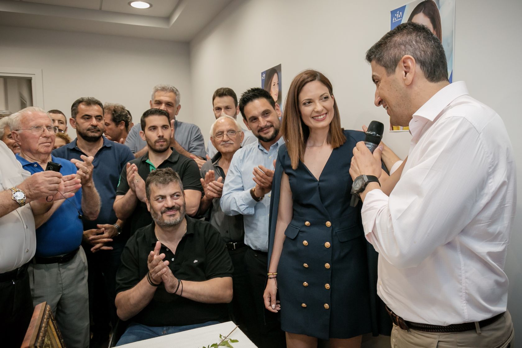 «Νεοδημοκράτες και Νεοδημοκράτισσες υποστηρικτές και δικαίως της πανέμορφης Νικολέτας, πατήρ Μανώλη και αγαπητέ πρόεδρε της ΝΟΔΕ και αγαπημένα στελέχη, να ξέρετε πως είναι μεγάλη μας χαρά και δική μου μεγάλη και απεριόριστη χαρά να βρισκόμαστε στα εγκαίνια το γραφείου της υποψήφιας βουλευτή της ΝΔ, Νικολέτας Σφακιανάκη.
