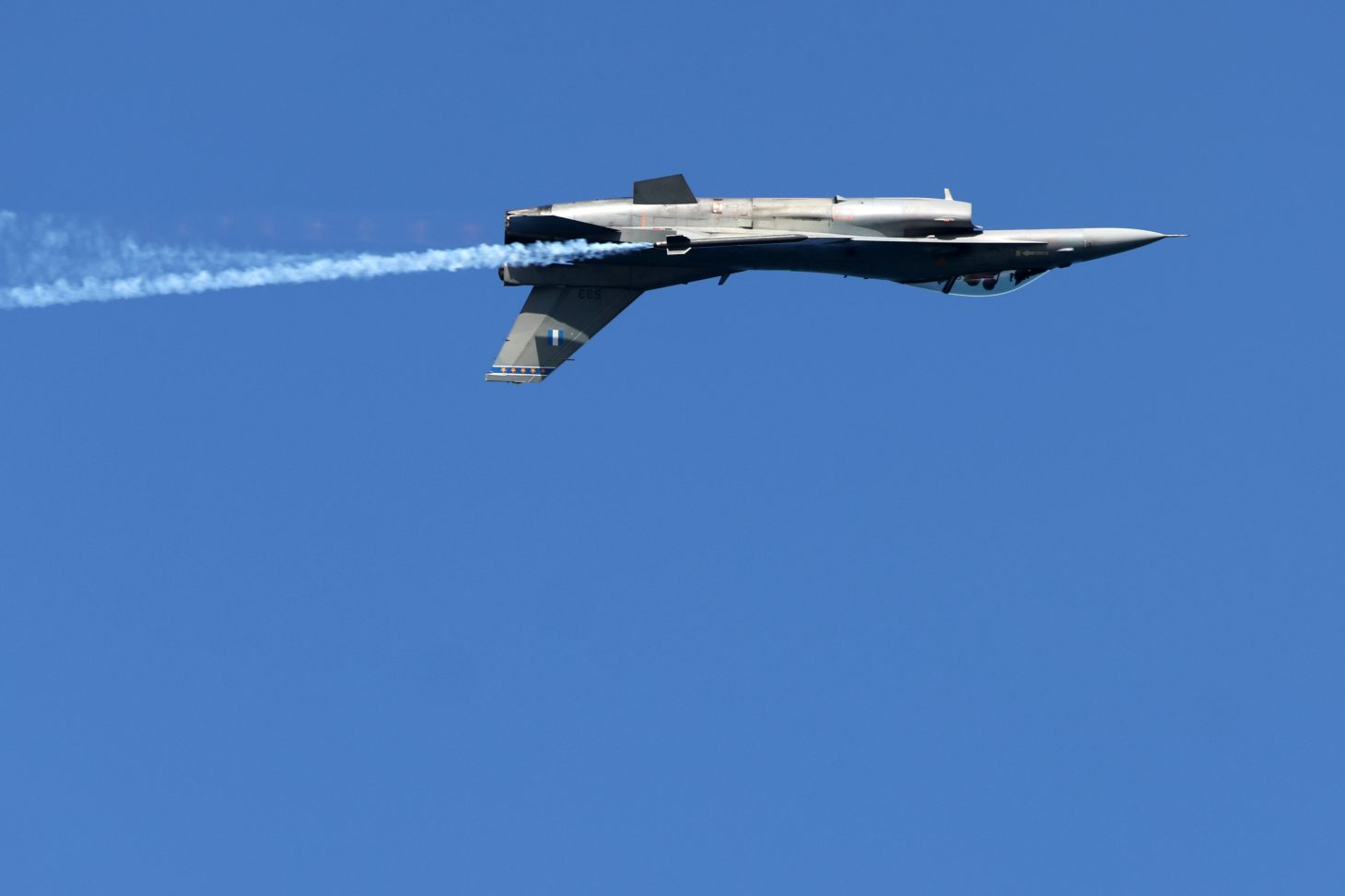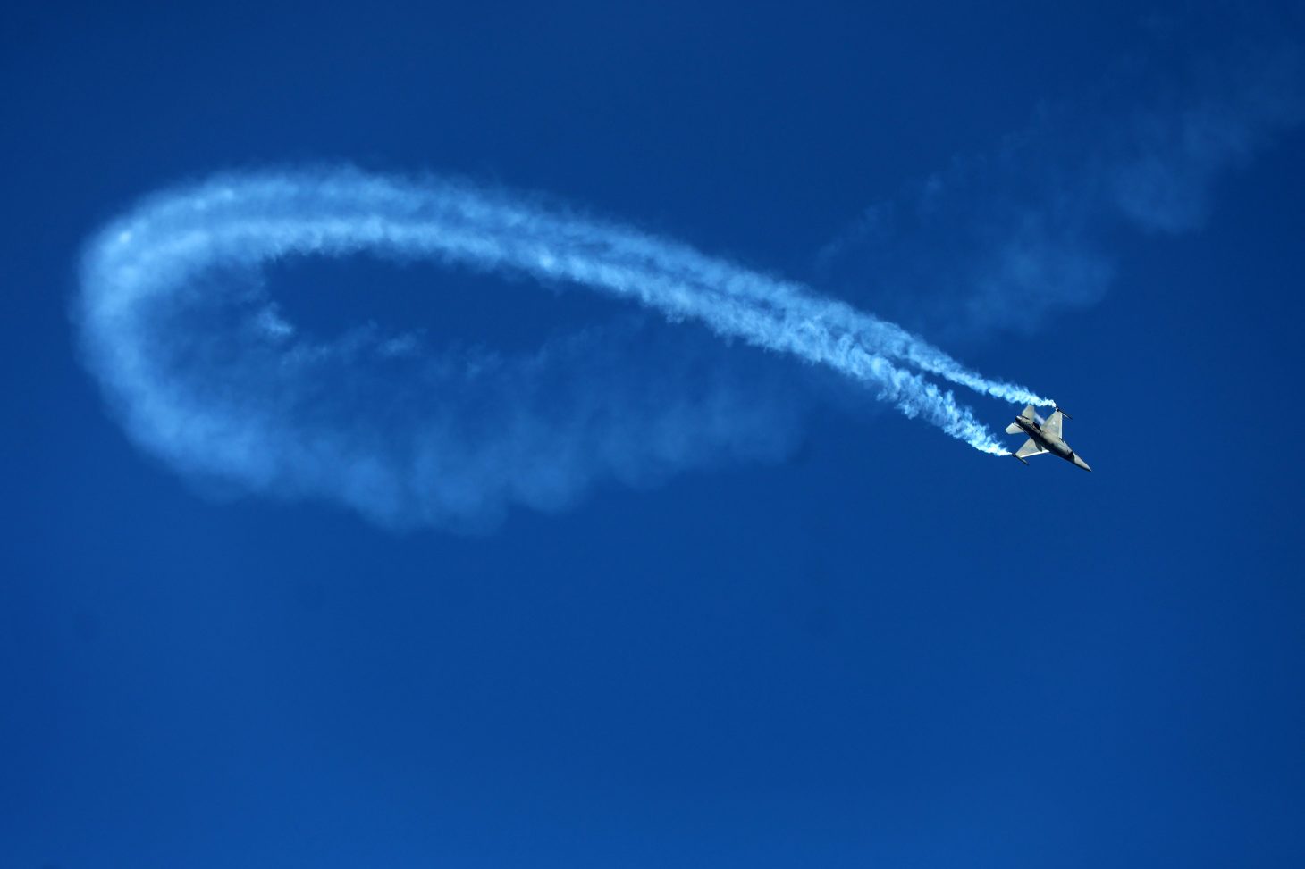 Ο ουρανός του Ηρακλείου γέμισε και σήμερα με ήχους και εικόνες υπερηφάνειας, καθώς το μαχητικό αεροσκάφος F-16 της Ομάδας «ΖΕΥΣ» της Πολεμικής Αεροπορίας πραγματοποίησε και φέτος εντυπωσιακή επίδειξη, τιμώντας τον πολιούχο της πόλης, Άγιο Μηνά. Το μοναδικό αεροπορικό θέαμα παρουσιάστηκε στην περιοχή του Καράβολα, συγκεντρώνοντας πλήθος πολιτών που σήκωσαν τα βλέμματα ψηλά για να απολαύσουν τους εντυπωσιακούς ελιγμούς των πιλότων.