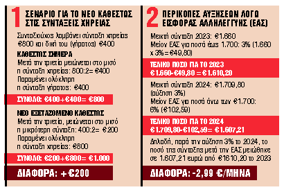 Χωρίς καν να ληφθεί υπόψη το αφορολόγητο όριο των 720 ευρώ. Μάλιστα, με τις (ετήσιες) αυξήσεις-αναπροσαρμογές λόγω πληθωρισμού, πολλοί ασφαλισμένοι αλλάζουν κατηγορία καταβολής της Εισφοράς (ονομαστικές αποδοχές) και φορολογούνται επαχθέστερα. Δηλαδή αντί να έχουν αύξηση, έχουν μείωση των αποδοχών.