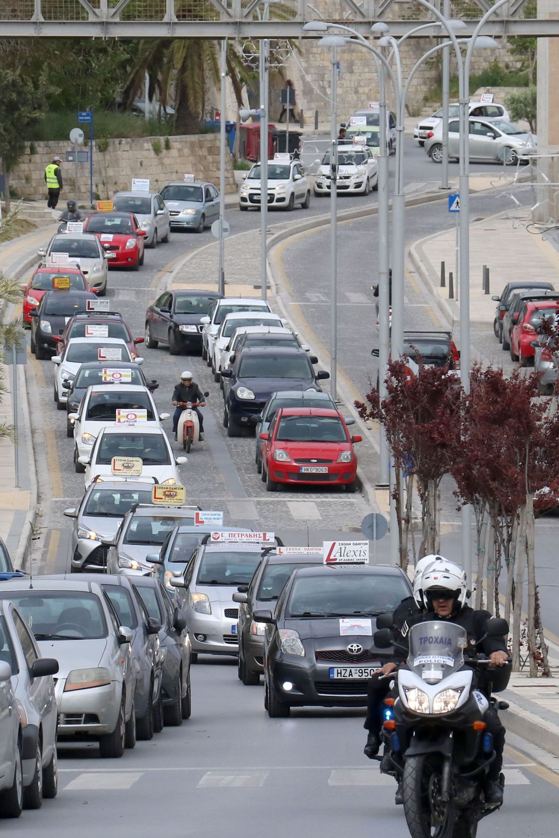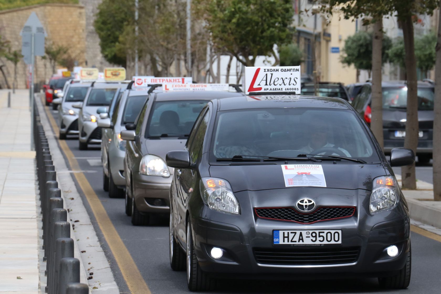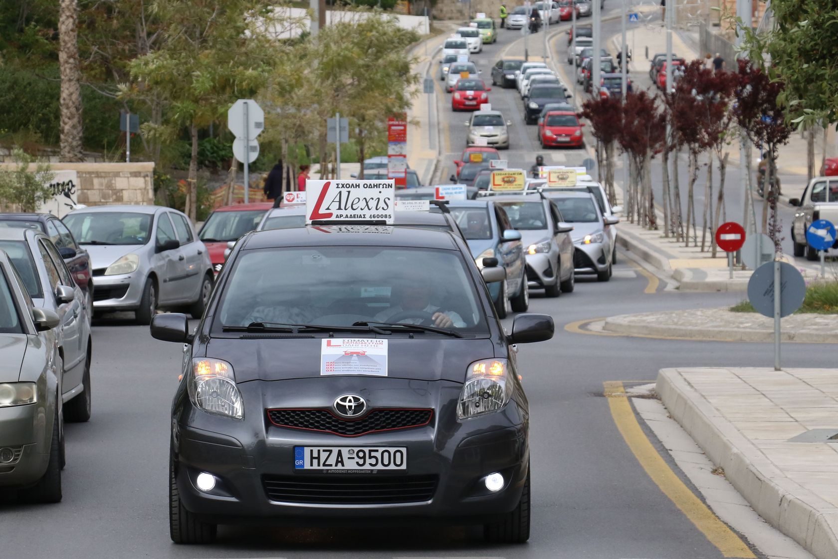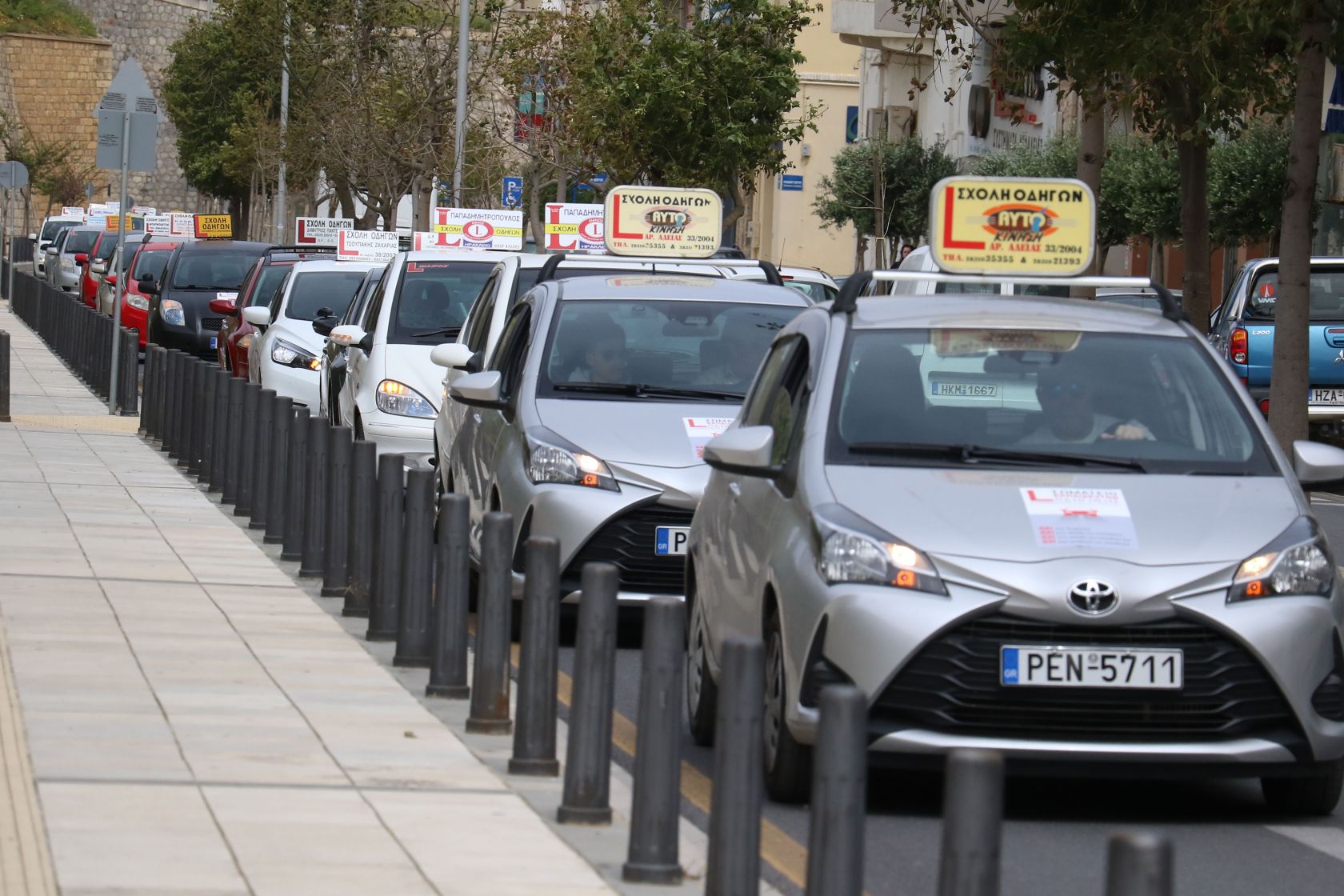 Σε συνέχεια της διαμαρτυρίας τους, οι εκπαιδευτές οδήγησης κάνουν πορεία διαμαρτυρίας με τα οχήματα τους στην παραλιακή λεωφόρο του Ηρακλείου.