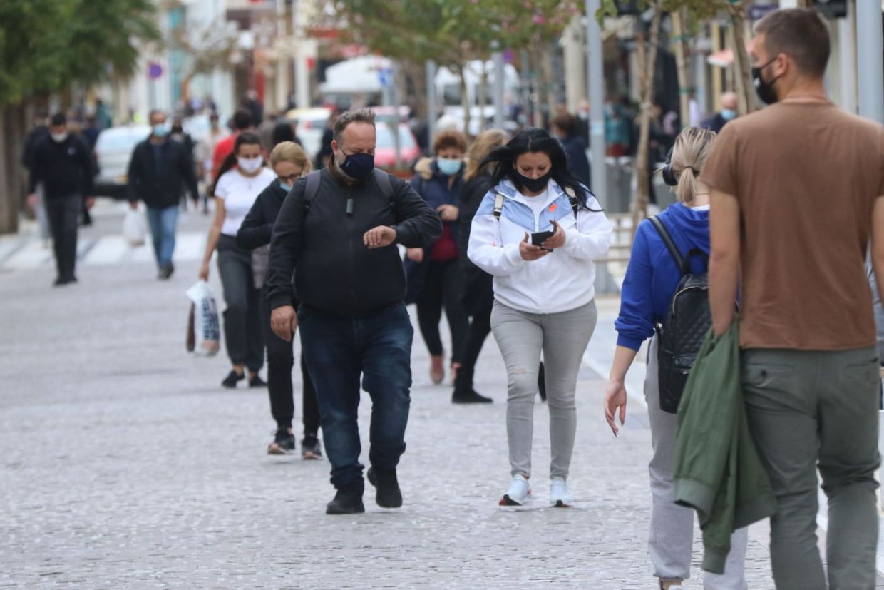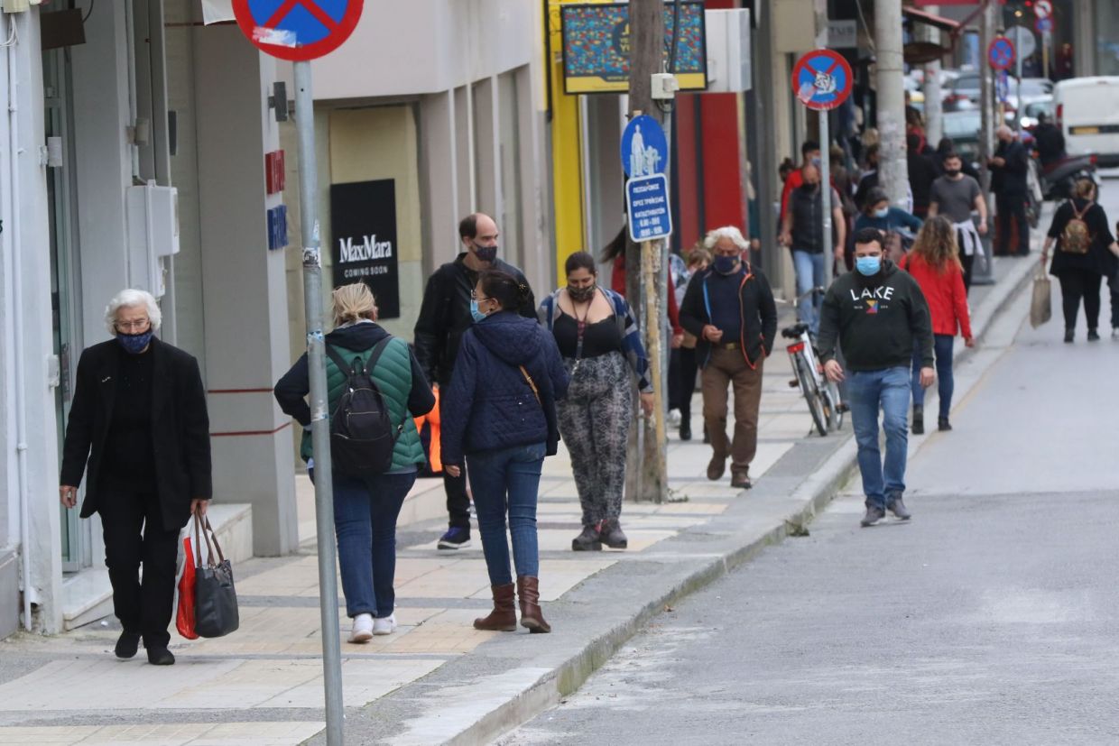 Οι πολίτες του Ηρακλείου ξεχύθηκαν στην αγορά για να κάνουν τα ψώνια τους, με τις απαραίτητες αποστάσεις και φορώντας μάσκα.