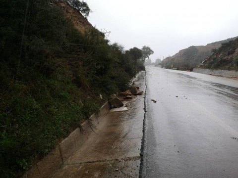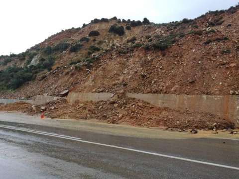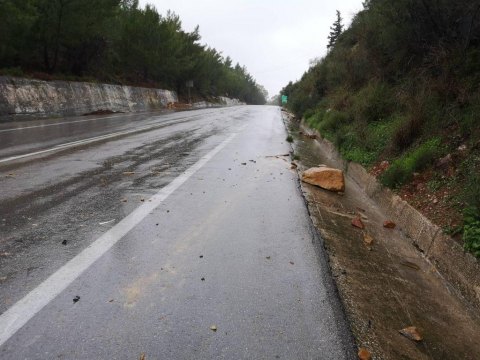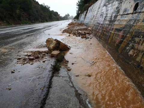 Μηχανήματα της Αντιπεριφέρειας Χανίων είναι σε επιφυλακή για τον καθαρισμό του δρόμου, όπου υπάρχουν καταπτώσεις πετρών, χωμάτων και δέντρων.