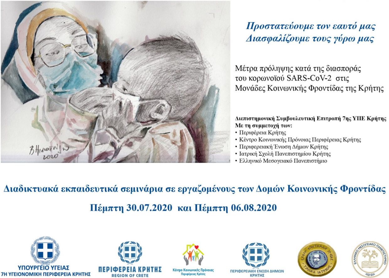 Διαδικτυακό εκπαιδευτικό σεμινάριο για δομές κοινωνικής φροντίδας από την 7η Υγειονομική Περιφέρεια Κρήτης, σε συνεργασία με την Περιφέρεια Κρήτης, την Περιφερειακή Ένωση Δήμων Κρήτης, την Ιατρική Σχολή του Πανεπιστημίου Κρήτης, το Ελληνικό Μεσογειακό Πανεπιστήμιο και το Κέντρο Κοινωνικής Πρόνοιας Περιφέρειας Κρήτης.
