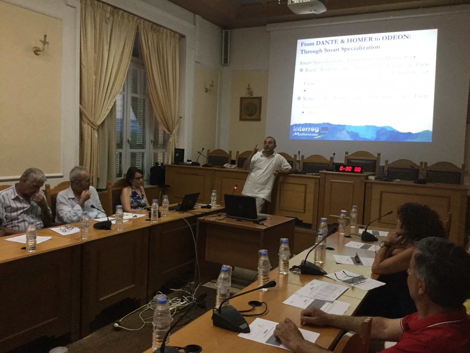 O Επίκουρος Καθηγητής του Πανεπιστημίου Κρήτης Κωνσταντίνος, Μανασάκης στην εισήγηση του παρουσίασε τους σκοπούς του ευρωπαϊκού προγράμματος ODEΟN (Open Data for European Open iNnovation), η Προϊσταμένη Τμήματος Σχεδιασμού Ηλεκτρονικών Υπηρεσιών για τον Πολίτη της Περιφέρεια Κρήτης Μαρίνα Γαβριλάκη παρουσίασε το θέμα: «Open Data & Περιφέρεια Κρήτης» και η Βασιλική Μαδούλκα συντονίστρια του Ευρωπαϊκού Προγράμματος: “ODEON” της Περιφέρεια Κρήτης παρουσίασε το χρονοδιάγραμμα και τα στάδια υλοποίησης του έργου.