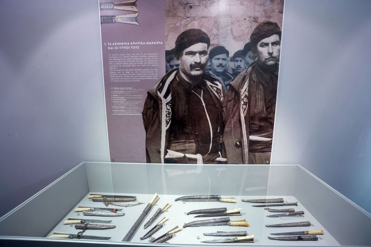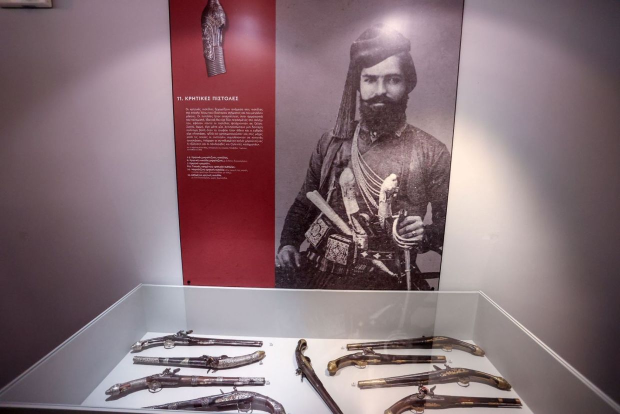Μέσα από 14 προθήκες, ο επισκέπτης θα έχει μία πλήρη εικόνα για τον οπλισμό της εποχής εκείνης αλλά και για τον λαϊκό πολιτισμό του νησιού, μιας και δεν πρόκειται μόνο για μια έκθεση κειμηλίων, φόρο τιμής στους προγόνους, αλλά και για μια αναφορά στις συνθήκες του πολέμου, καθώς και για μια ξενάγηση στην τέχνη, την τεχνική, την αισθητική και τις πεποιθήσεις της εποχής.