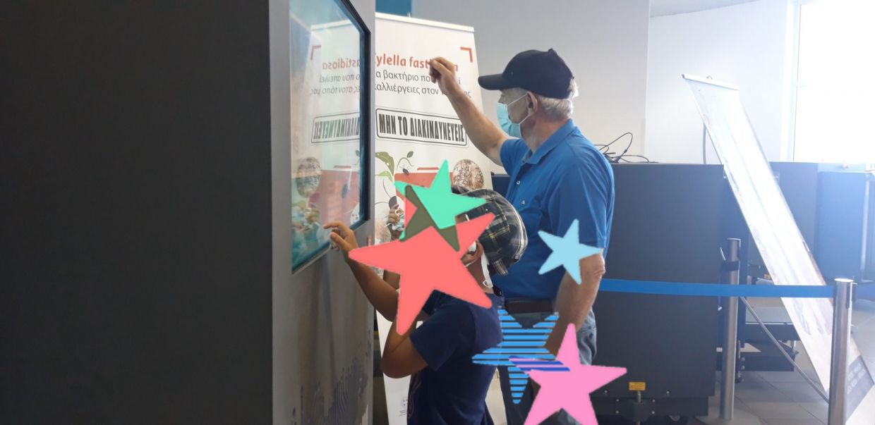 Ακολούθησε μία στάση με παιχνιδιάρικο ύφος στον Επιβατικό Σταθμό όπου μέσα από τις οθόνες έπαιξαν παιχνίδια αλλά και μέσα από διαδραστικές οθόνες γνώρισαν την ιστορία της πόλης και του λιμανιού.