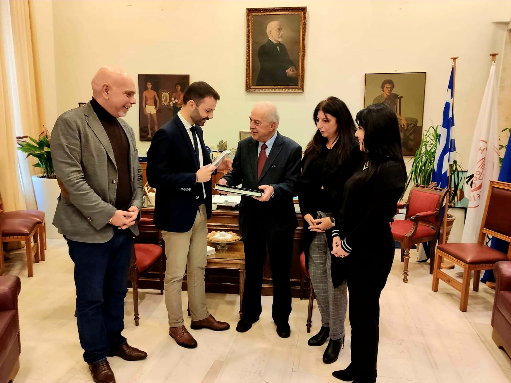 Ο πρόεδρος του Εθνικού Αθλητικού Κέντρου Ηρακλείου κ. Ζερβός και τα μέλη της Διοικούσας Επιτροπής επισκέφθηκαν το Δήμαρχο Ηρακλείου κ. Λαμπρινό τον Περιφερειάρχη Κρήτης κ. Αρναουτάκη και το Δήμαρχο Μαλεβιζίου κ. Μποκέα προκειμένου να τους ευχηθούν χρόνια πολλά και να τους παραδώσουν ένα αναμνηστικό δώρο ενόψει των εορτών των Χριστουγέννων.