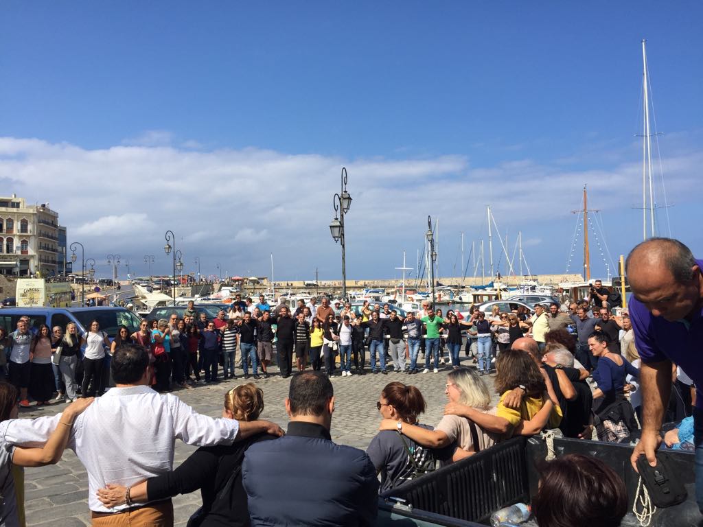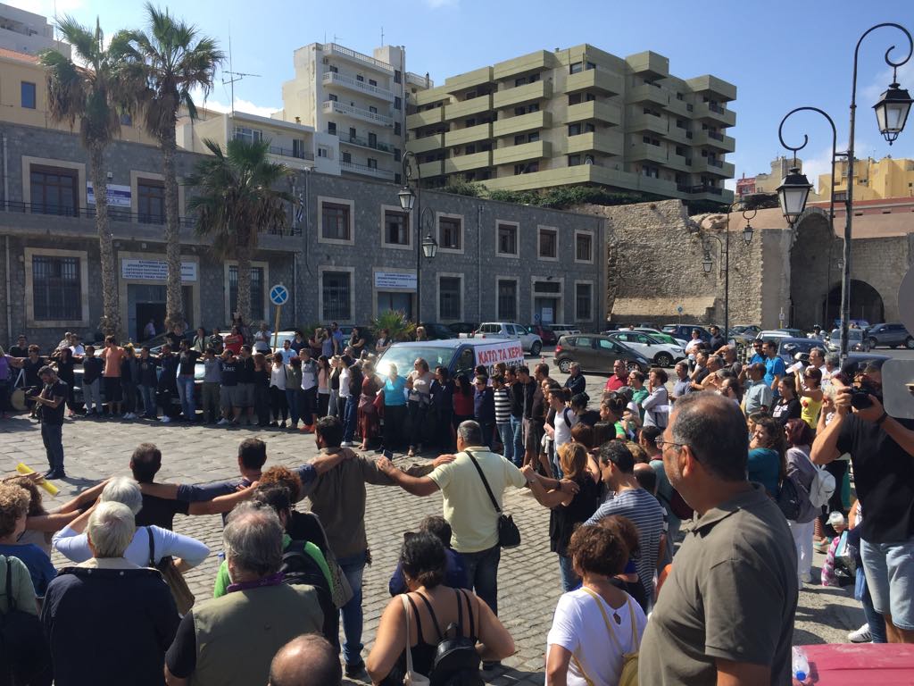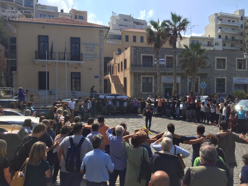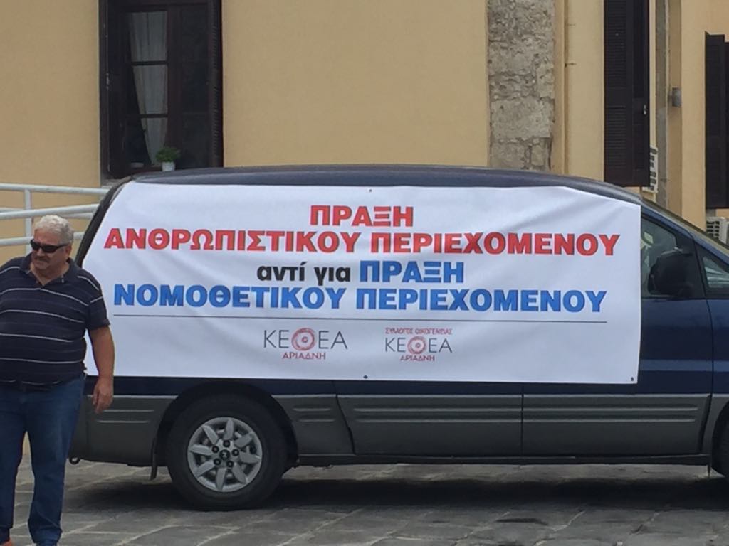 Αντιπροσωπεία μελών, γονέων, φίλων και εθελοντών του ΚΕΘΕΑ ΑΡΙΑΔΝΗ από Χανιά, Λασίθι και Ηράκλειο βρέθηκε σήμερα έξω από την Αποκεντρωμένη Διοίκηση Κρήτης για να συμπαρασταθεί στη συγκέντρωση διαμαρτυρίας.
