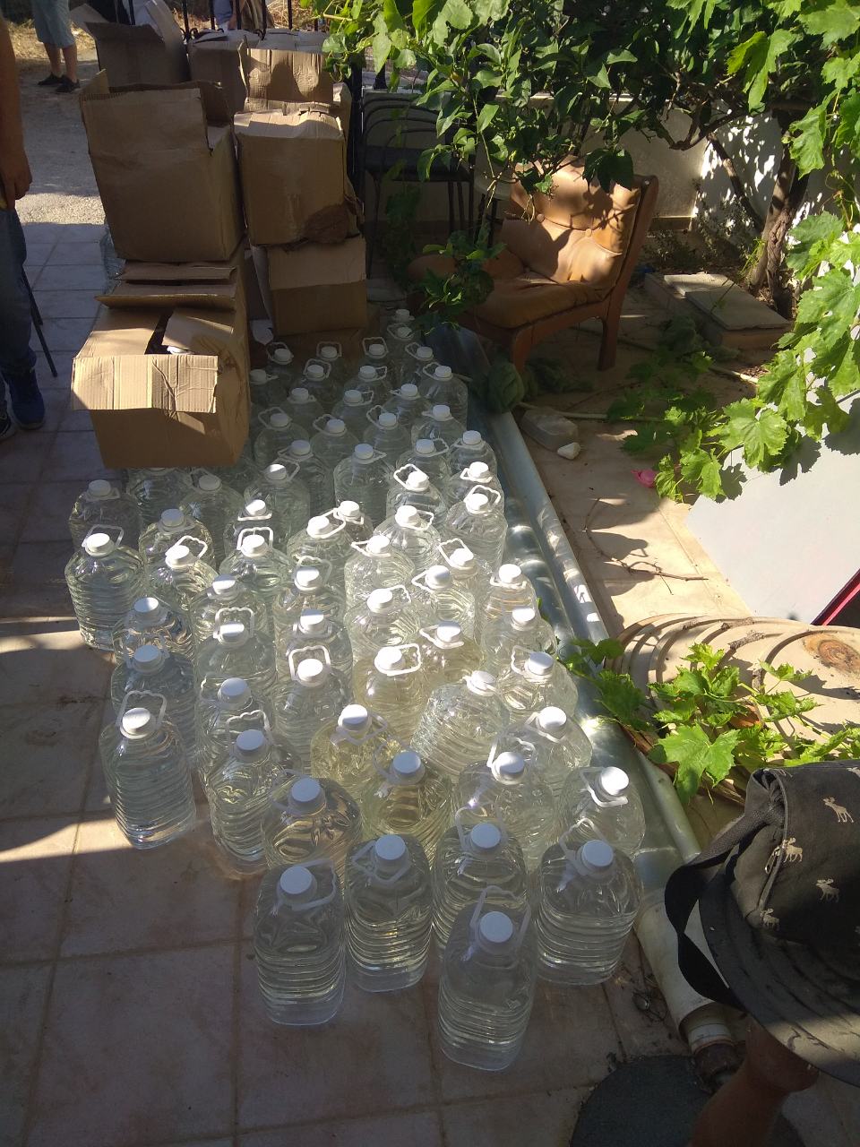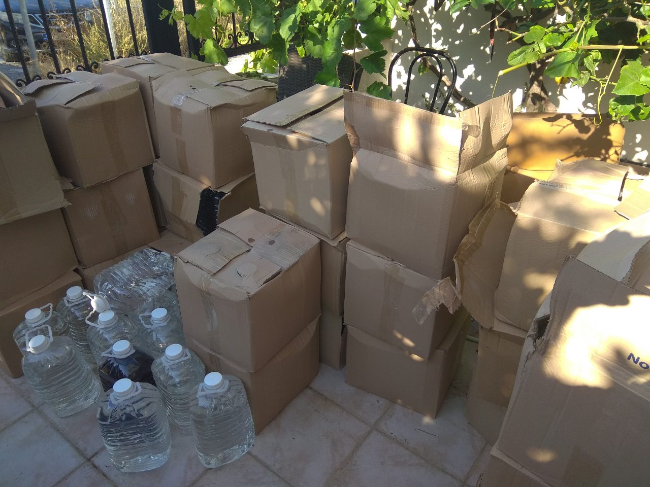 2.056 λίτρα οινοπνευματωδών ποτών (551 φιάλες του ενός λίτρου έκαστη και ακόμη 301 φιάλες των 5 λίτρων έκαστη),