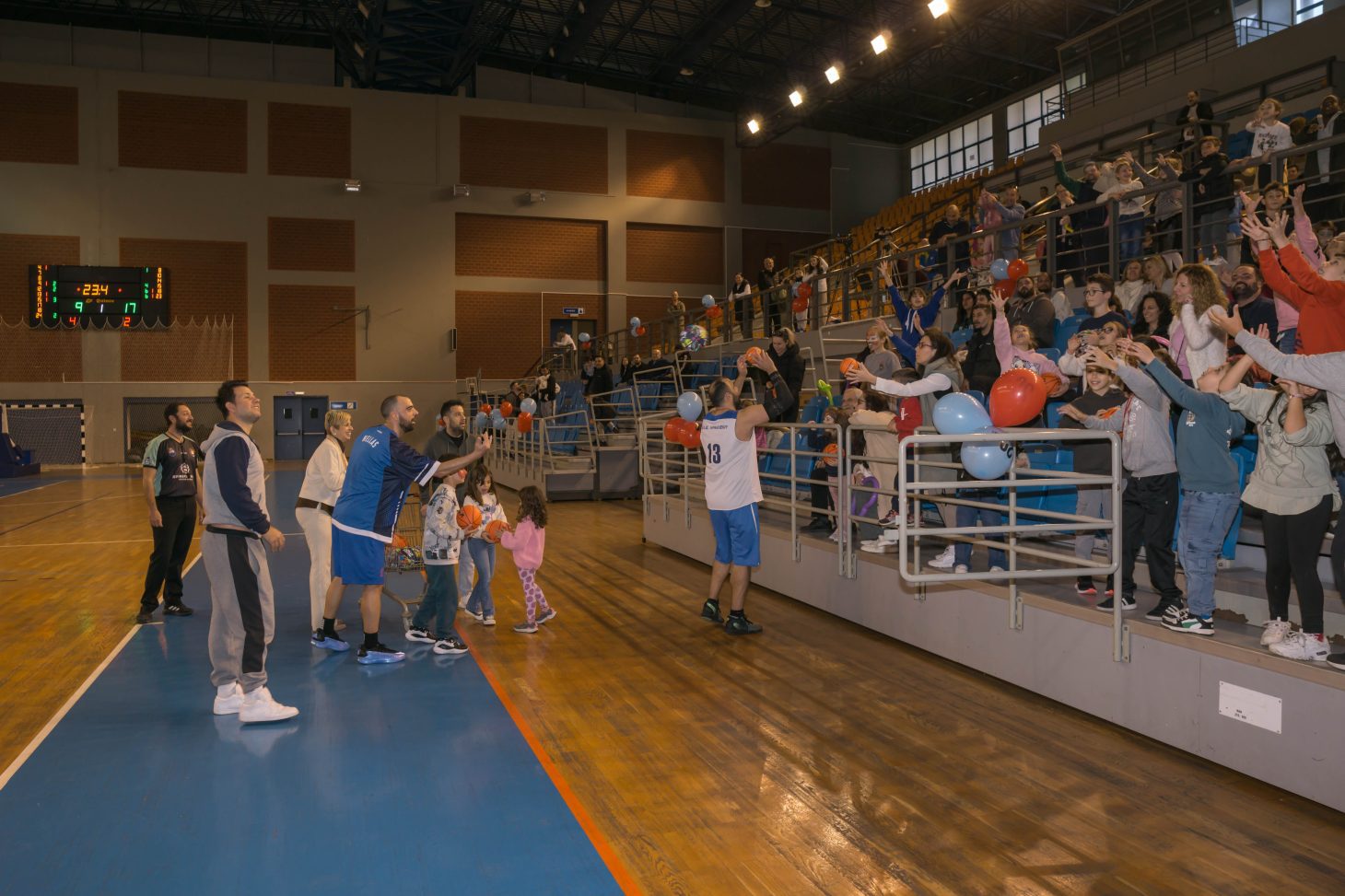 “Ο αγώνας διεξήχθη παρουσία πολλών θεατών και παιδιών και σκοπός ήταν η συγκέντρωση βοήθειας για το Σύλλογο Εθελοντικής Προσφορά και Στήριξης “Ορίζοντας”. Το κλειστό Κλαδισσού το οποίο παραχωρήθηκε δωρεάν από το Δήμο Χανίων, γέμισε με οικογένειες και παιδιά, τα οποία απόλαυσαν τις εκπλήξεις που είχαν ετοιμαστεί, όπως face painting, μπαλονοκατασκευές, προσφορά μπαλών καλαθοσφαίρισης καθώς και τη μεγάλη έκπληξη, την προσφορά μιας φανέλας του Γιάννη Αντετοκούνμπο προσφορά της Ελληνικής Ομοσπονδίας Καλαθοσφαίρισης.