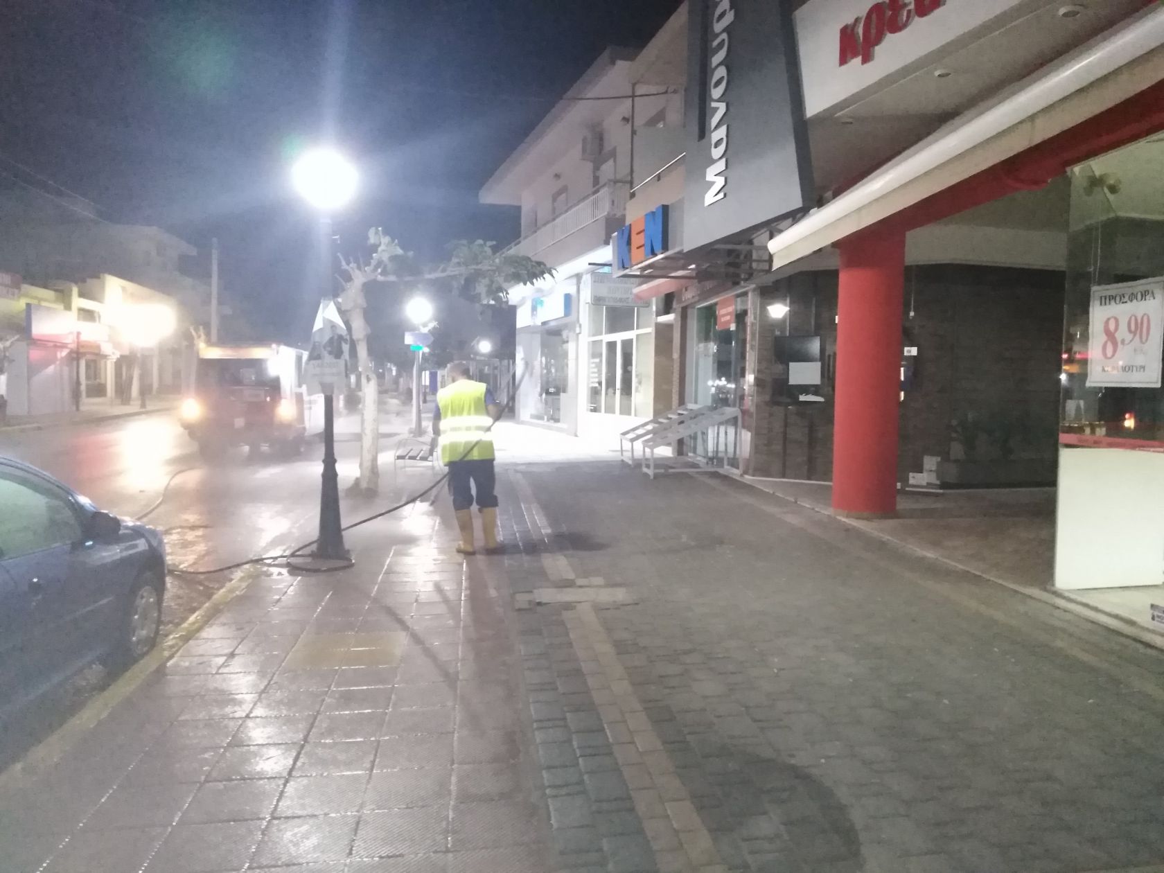 Με τη διάθεση ειδικού μηχανολογικού εξοπλισμού και την αρωγή του Στέφανου Βλασιάδη, πραγματοποιήθηκαν πλύσεις στα πεζοδρόμια της Ελευθερίου Βενιζέλου στο ρεύμα προς Άγιο Νικόλαο, από το ύψος της οδού Μακεδονίας έως το ύψος της οδού Παγωμένου. Απομακρύνθηκαν χρόνιες ακαθαρσίες και αποχρωματίστηκαν υλικά που είχαν διαφοροποιήσει την εικόνα των πεζοδρομίων.