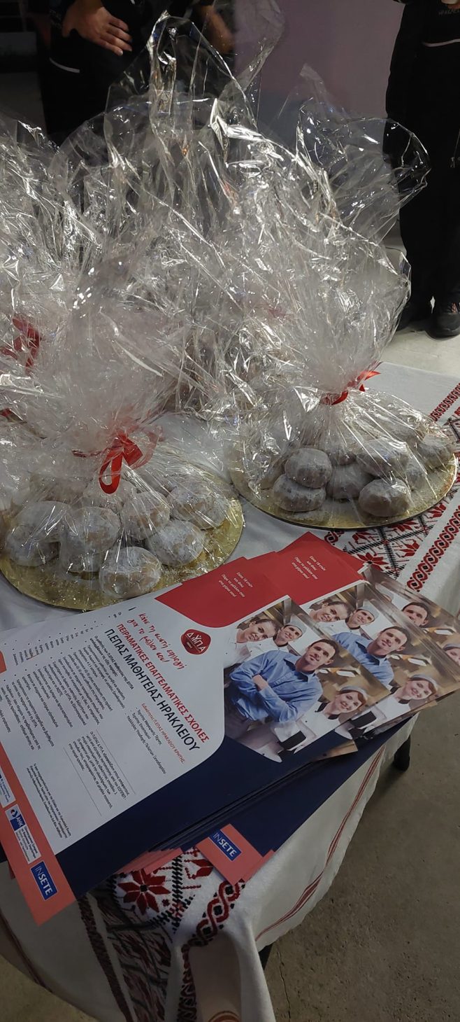 Σε μία συγκινητική πρωτοβουλία γεμάτη αγάπη και ευαισθησία, προχώρησαν οι σπουδαστές των Τμημάτων Μαγειρικής Τέχνης ΕΠΑ.Σ.-Π.ΕΠΑΣ. της Δημόσιας Υπηρεσίας Απασχόλησης (Δ.ΥΠ.Α.) από το Ηράκλειο, οι οποίοι επισκέφθηκαν τους οικίσκους που διαμένουν οι σεισμόπληκτοι του Αρκαλοχωρίου, προσφέροντας τους δωρεάν παραδοσιακά χριστουγεννιάτικα γλυκά και σοκολατάκια.