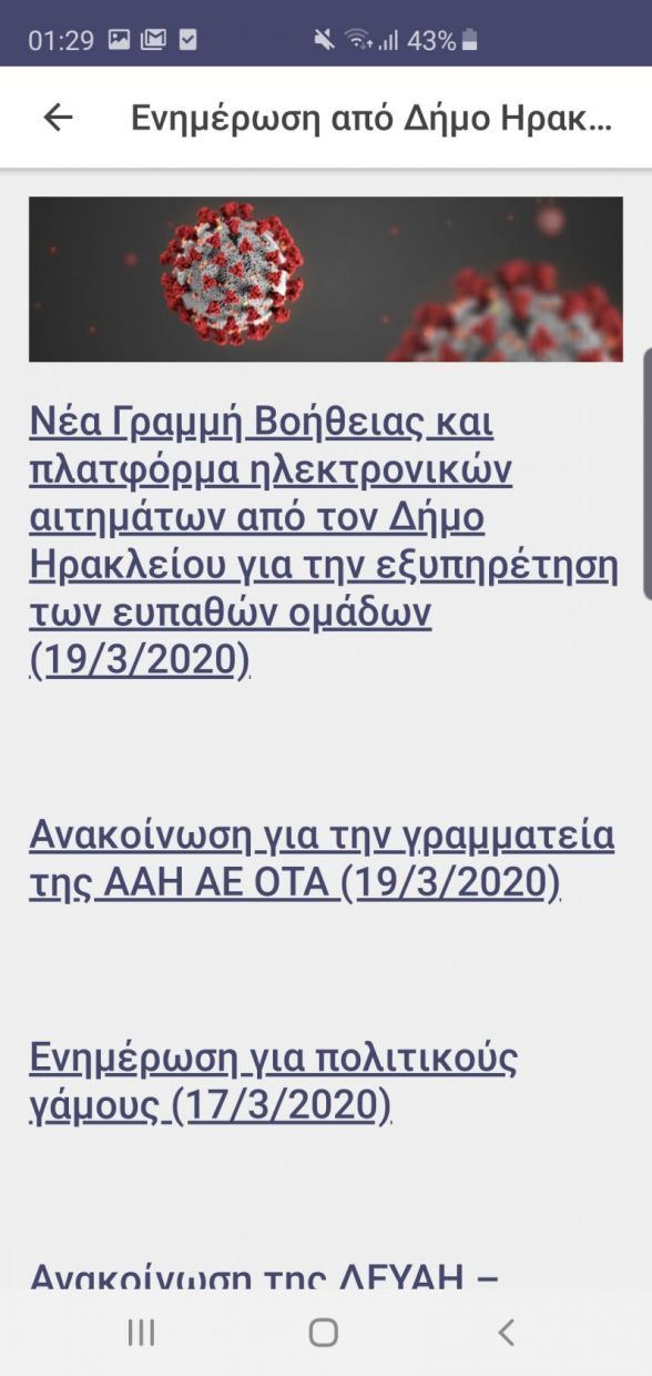 o Ανακοινώσεις του Δήμου Ηρακλείου σχετικά με τον κορωνοϊό