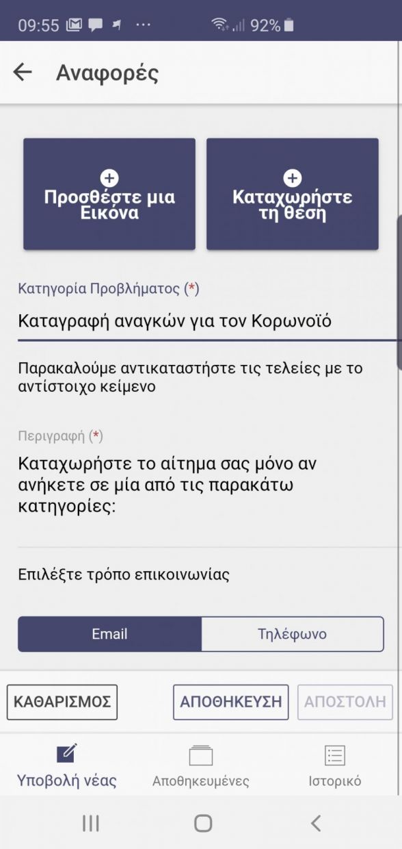 - Δυνατότητα υποβολής αιτημάτων από τους Δημότες για την καταγραφή αναγκών για κορωνοϊό και αιτήματα για ψυχολογική υποστήριξη