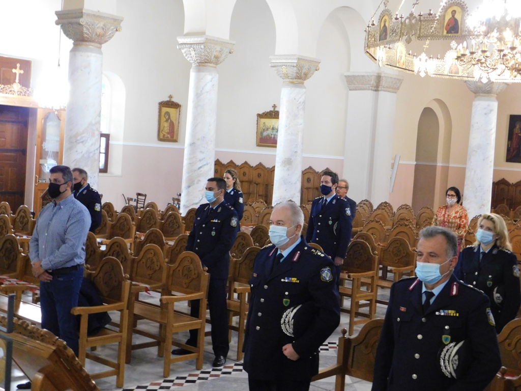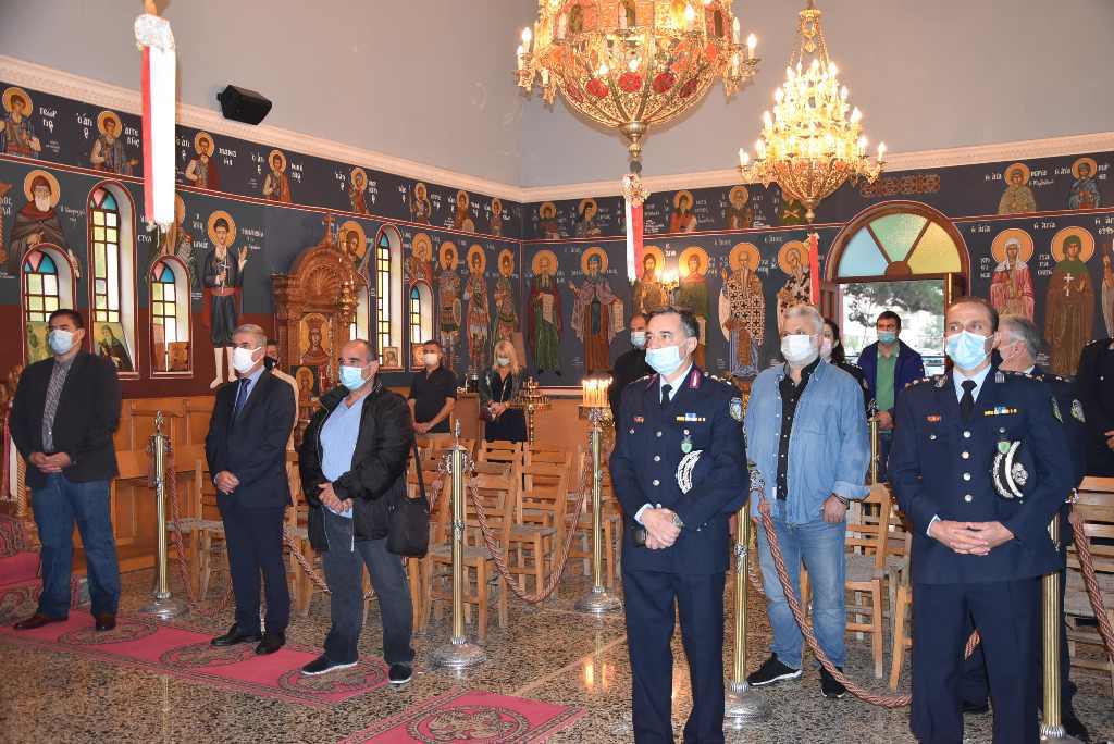 Για το λόγο αυτό τελέστηκε σήμερα το πρωί, δοξολογία στον Ιερό Ναό Πέτρου και Παύλου στα Χανιά, στον Ιερό Μητροπολιτικό Ναό του Αγίου Μηνά Ηρακλείου, ενώ στη Διεύθυνση Αστυνομίας Ρεθύμνης η δοξολογία πραγματοποιήθηκε στον Ιερό Αγίας Ειρήνης του Τμήματος Δοκίμων Αστυφυλάκων Ρεθύμνου και στη Διεύθυνση Αστυνομίας Λασιθίου στον Ιερό Ναό Αγίας Τριάδος, στις οποίες παραβρέθηκαν εκπρόσωποι των συνδικαλιστικών ενώσεων του προσωπικού, καθώς και οι απόστρατοι του Σώματος.