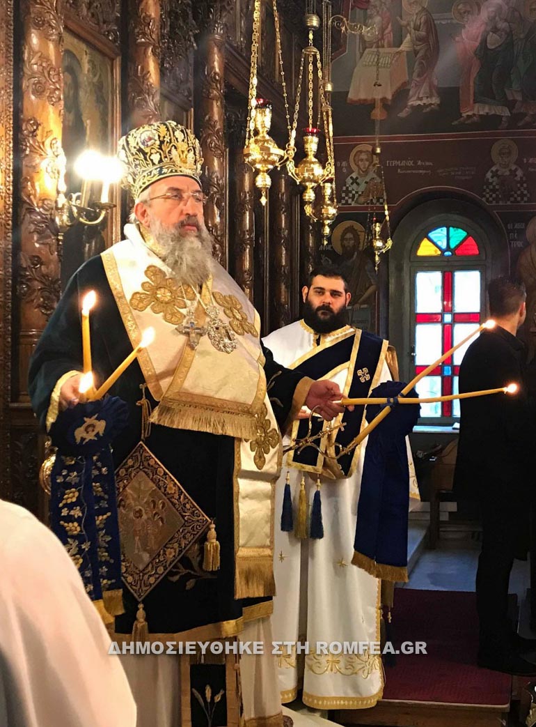 Πριν από την απόλυση της Θείας Λειτουργίας ο Επίσκοπός μας τέλεσε την Ακολουθία του Μεγάλου Αγιασμού, παρόντων του Υφυπουργού Υποδομών και Μεταφορών κ. Ιωάννη Κεφαλογιάννη, των τοπικών Αρχών και πολλών πιστών, οι οποίοι συμμετείχαν με κατάνυξη στις ιερές ακολουθίες.