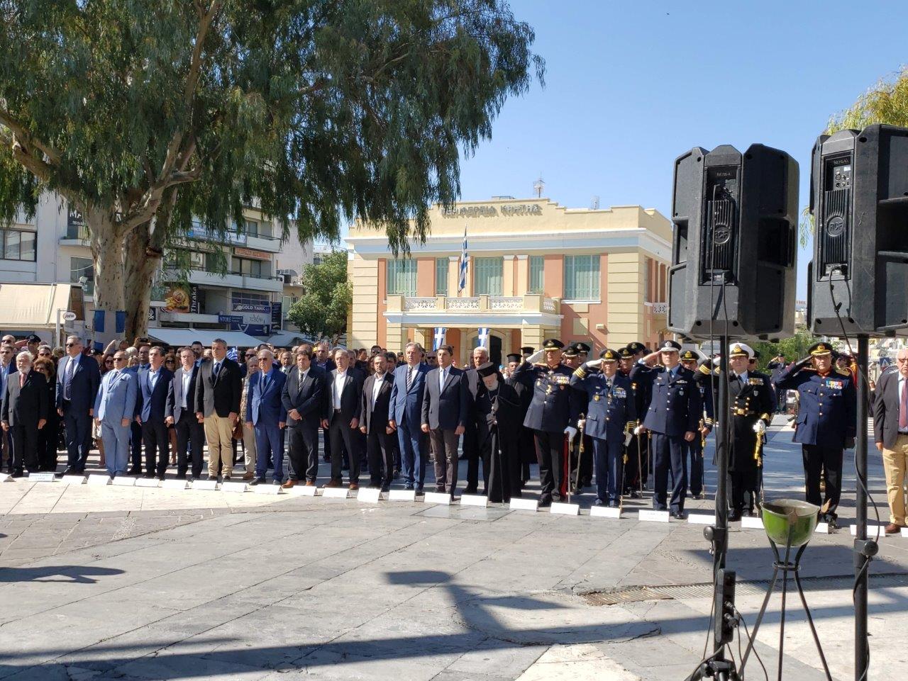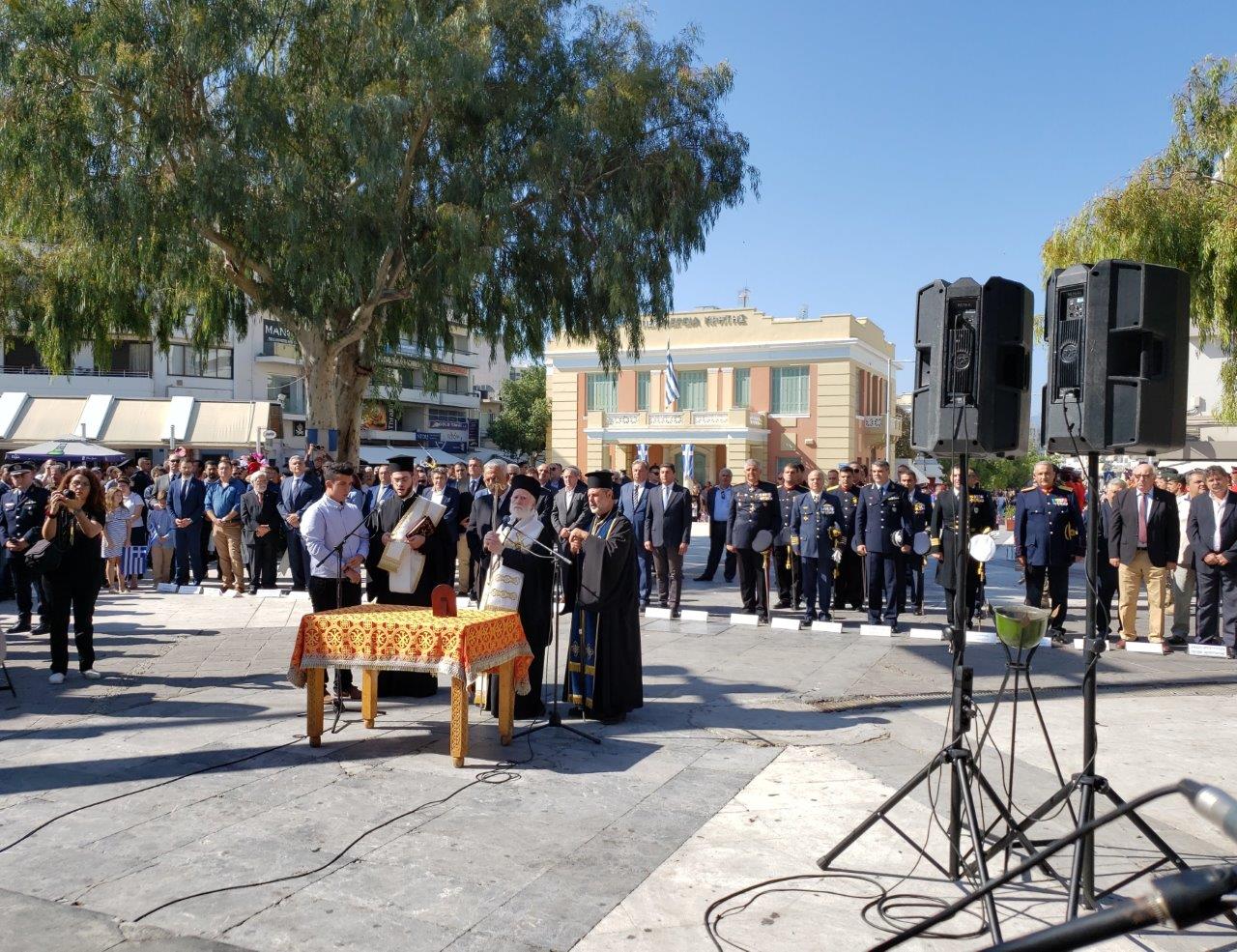 Με δοξολογία στο Μητροπολιτικό Ναό του Αγίου Μηνά, ομιλία, επιμνημόσυνη δέηση, κατάθεση στεφάνων στο μνημείο του Άγνωστου Στρατιώτη και παρέλαση στη πλατεία Ελευθερίας τιμάται και στο Ηράκλειο η εθνική επέτειος της 28ης Οκτωβρίου.