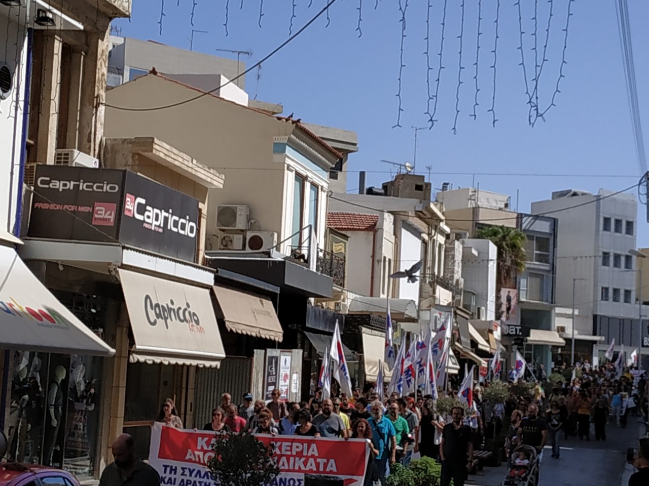Η μαζική παρουσία εργαζόμενων από δεκάδες κλάδους στο μοναδικό απεργιακό Συλλαλητήριο που διοργανώθηκε στο Ηράκλειο επιβεβαιώνει τις ταξικές δυνάμεις και τα σωματεία που όλο αυτό το διάστημα αναπτύσσουν μία πολύμορφη δραστηριότητα για την επιτυχία της απεργίας!