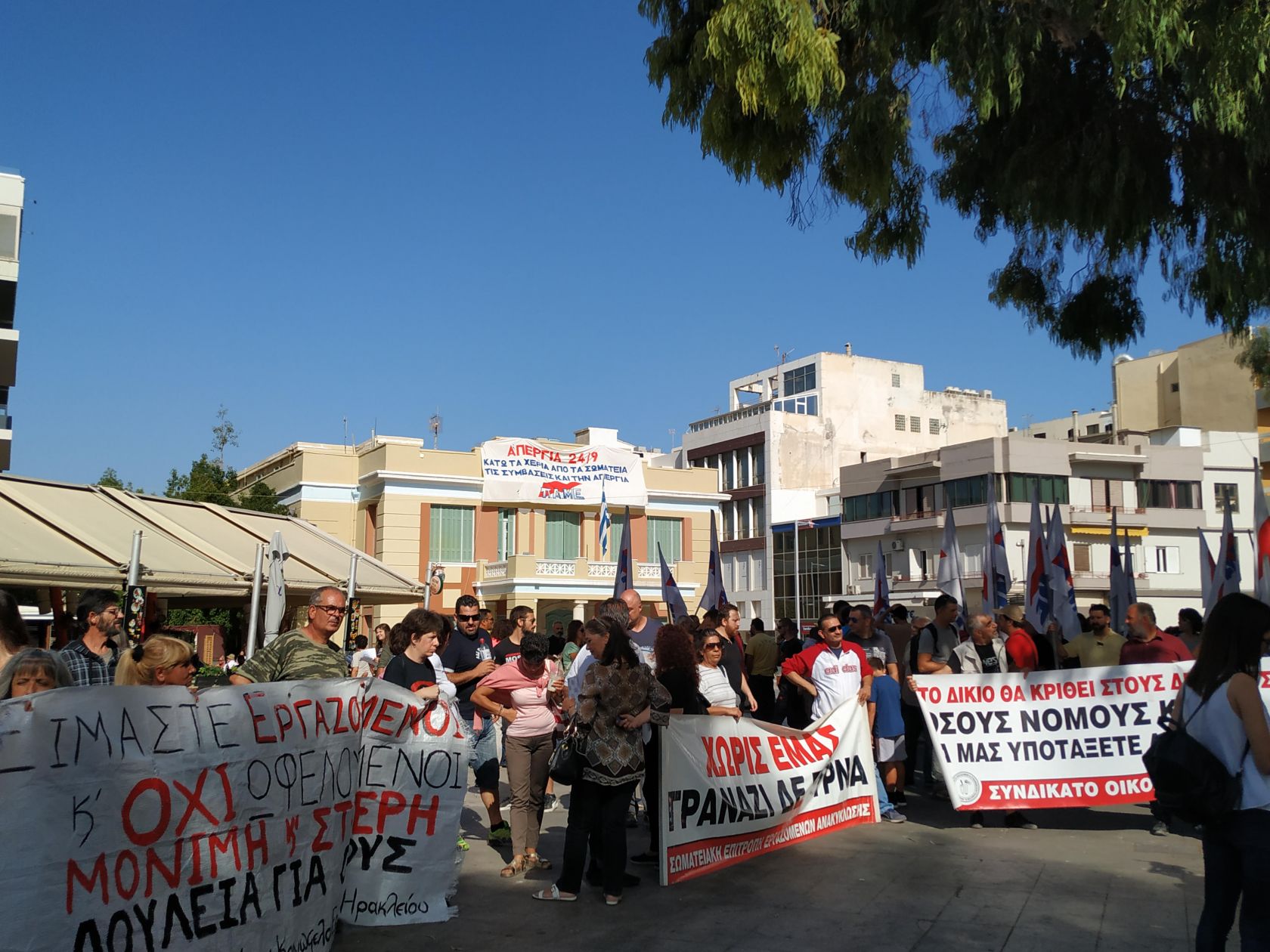 Στο Συλλαλητήριο παραβρέθηκαν και χαιρέτισαν οι εξής μαζικοί φορείς: το Συνδικάτο Οικοδόμων Ηρακλείου, το Συνδικάτο Γάλακτος Τροφίμων και Ποτών Ηρακλείου, το σωματείο εργαζομένων στην ιδιωτική εκπαίδευση Ν. Ηρακλείου, η Ένωση συνταξιούχων ΙΚΑ Ν. Ηρακλείου, το Συνδικάτο Τύπου Χάρτου Κρήτης, η Ένωση Ιδιωτικών Υπαλλήλων Ηρακλείου μαζί με τη σωματειακή επιτροπή της Ανακύκλωσης, η επιτροπή αγώνα των εργαζομένων στα κοινωφελή προγράμματα Δήμου Ηρακλείου, ο Σύλλογος Εργαζομένων Δήμου Ηρακλείου, το σωματείο εκπαιδευτικών πρωτοβάθμιας εκπαίδευσης «Δομήνικος Θεοτοκόπουλος», το σωματείο εργαζομένων στις ΔΕΥΑ Ν. Ηρακλείου, το σωματείο εργαζομένων στη ΔΕΥΑΗ, ο Σύλλογος Δικαστικών Υπαλλήλων Νομού Ηρακλείου.