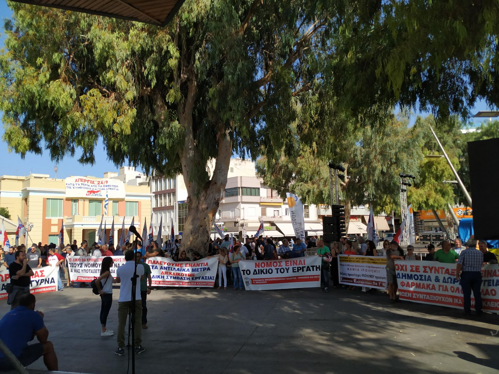 “Με μεγάλη επιτυχία ολοκληρώθηκε η απεργιακή κινητοποίηση των σωματείων που είχαν δώσει απεργιακό ραντεβού στην Πλατεία Ελευθερίας. Εκατοντάδες εργαζόμενοι έδωσαν σήμερα μία πρώτη απάντηση στην Κυβέρνηση της ΝΔ και την εργοδοσία που επιδιώκουν να βάλουν στον πάγο τα σωματεία, την απεργία και τις Συλλογικές Συμβάσεις.