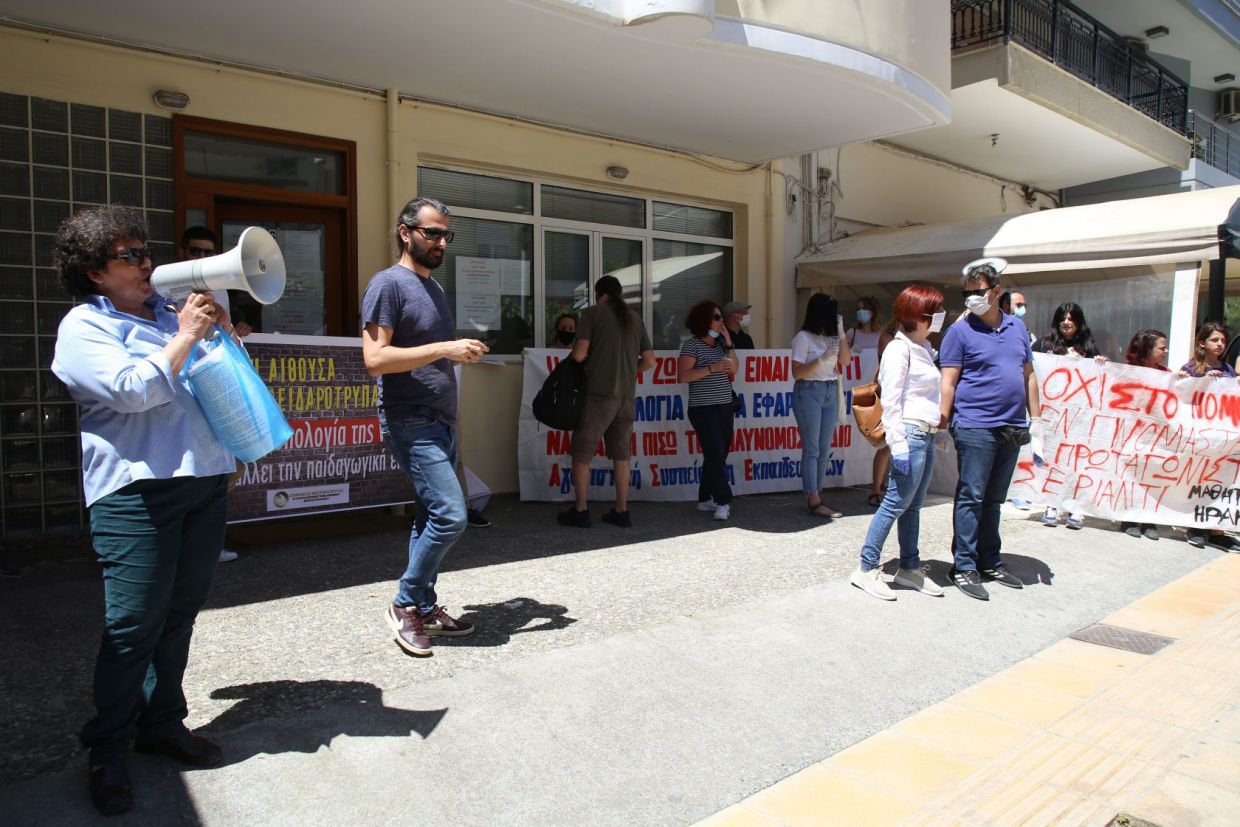 Στο Ηράκλειο πραγματοποιήθηκε συγκέντρωση διαμαρτυρίας στην Περιφερειακή Διεύθυνση Εκπαίδευσης Κρήτης, στις 12 το μεσημέρι, με αίτημα την απόσυρση της τροπολογίας. Ωστόσο κινητοποιήσεις πραγματοποιήθηκαν τόσο σε Χανιά, Ρέθυμνο, Λασίθι, όσο και σε όλη την Ελλάδα.