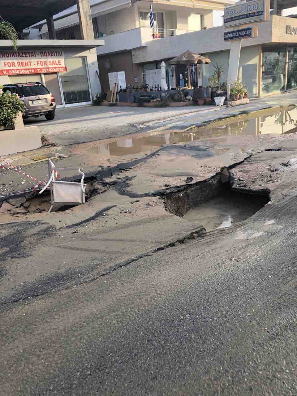Κλειστή από χθες η κεντρική οδός της Αμμουδάρας – Την βλάβη αποκαθιστά η ΔΕΥΑ Μαλεβιζίου