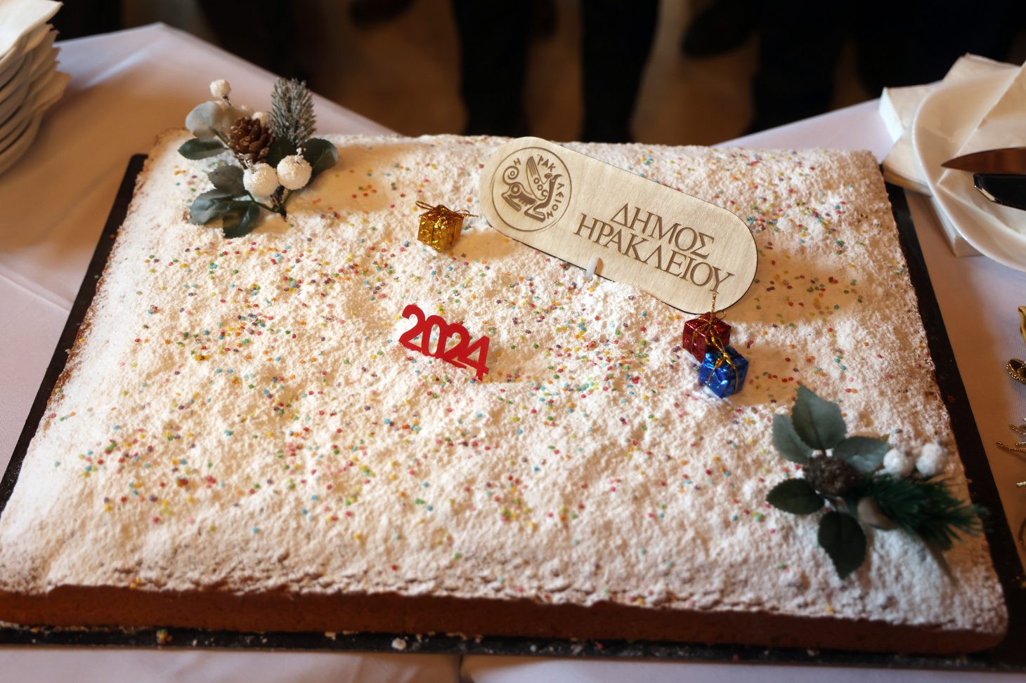 Την κοπή της Πρωτοχρονιάτικης πίτας έκανε ο Δήμαρχος Ηρακλείου Αλέξης Καλοκαιρινός, ο οποίος στον χαιρετισμό του ανέφερε: «Υποδεχόμαστε το 2024 όλοι μαζί, έχοντας μέσα μας τις ελπίδες και τις ανησυχίες, τις έγνοιες και τις προσδοκίες. Γνωρίζω ότι υπάρχουν μεγάλες προσδοκίες από τη νέα Δημοτική Αρχή. Αυτό είναι κάτι του οποίου έχουμε συνείδηση. Θα δουλέψουμε σκληρά και συγκροτημένα, με αφοσίωση στην Πόλη και τους ανθρώπους της. Το Ηράκλειο έχει πολλές δυνατότητες αλλά και μεγάλα προβλήματα. Είναι μια άνιση Πόλη και πάνω σε αυτή τη βάση θα πρέπει να εργαστούμε, να βελτιώσουμε την καθημερινότητα και να διορθώσουμε τα δομικά της προβλήματα. Μας περιμένει λοιπόν πάρα πολύ δουλειά για το καλό της ανοικτής μας Πόλης, δηλαδή, για όλο τον Δήμο, όλους τους κατοίκους του Ηρακλείου. Θα είναι δουλειά συνεργατική, συλλογική, από την οποία κανείς δεν θα αποκλειστεί και στην οποία θέλουμε την ενεργό συμμετοχή των Δημοτών. Θα χρειαστεί να είμαστε διεκδικητικοί και πάρα πολύ ενεργητικοί. Η διεκδίκηση είναι ένα καταστατικό στοιχείο στις μέρες μας και θα έλεγα ότι είναι μια απόλυτη επιταγή για τον Δήμο Ηρακλείου.