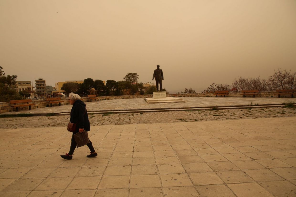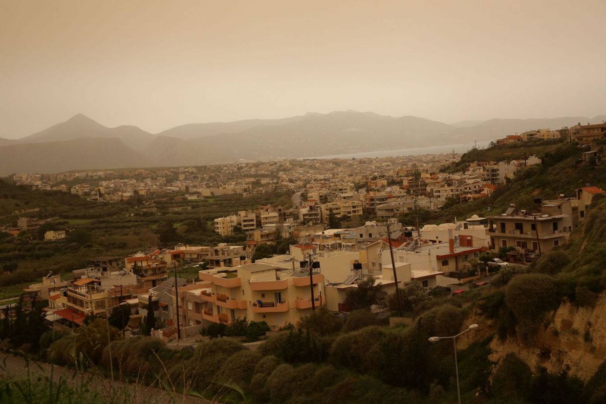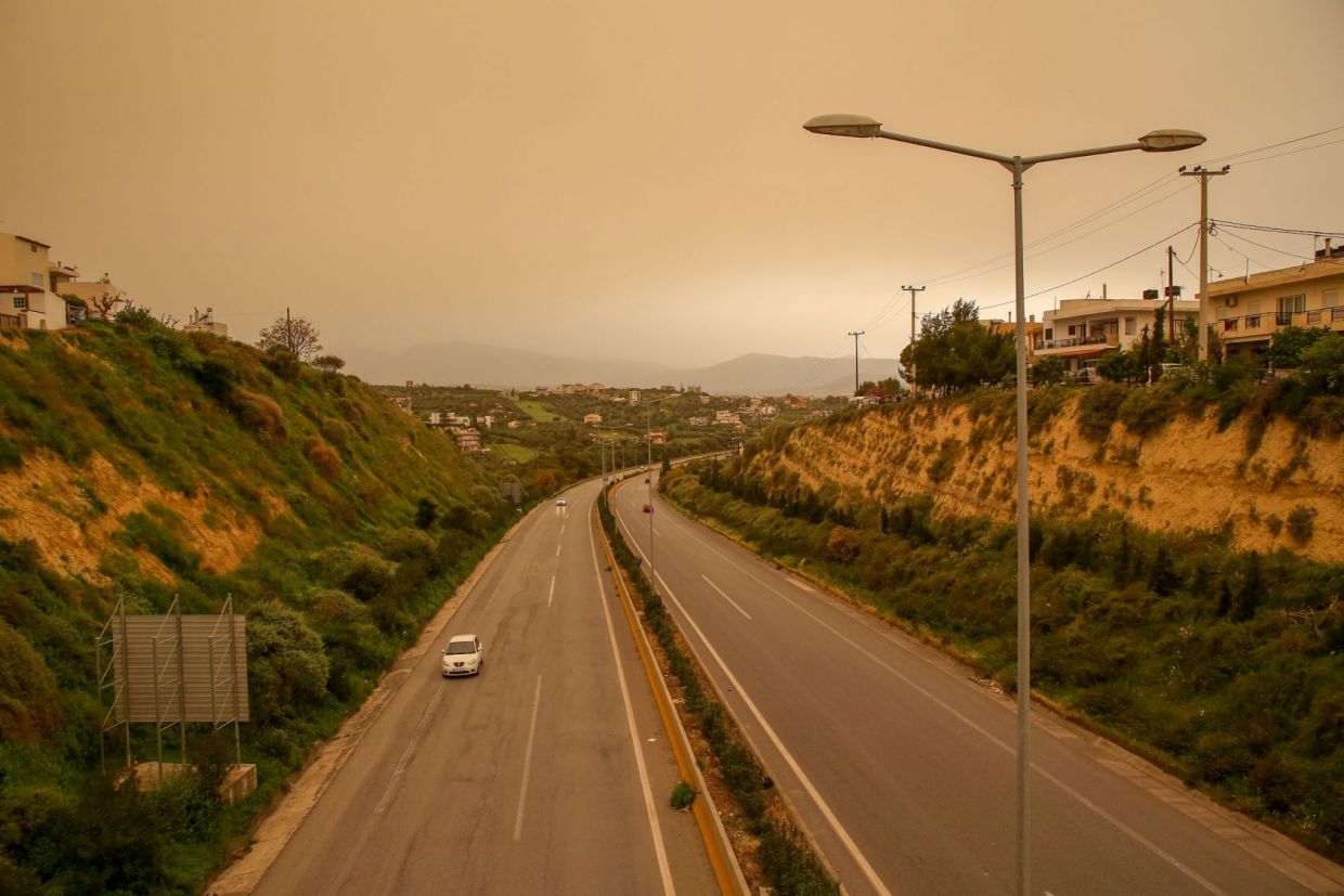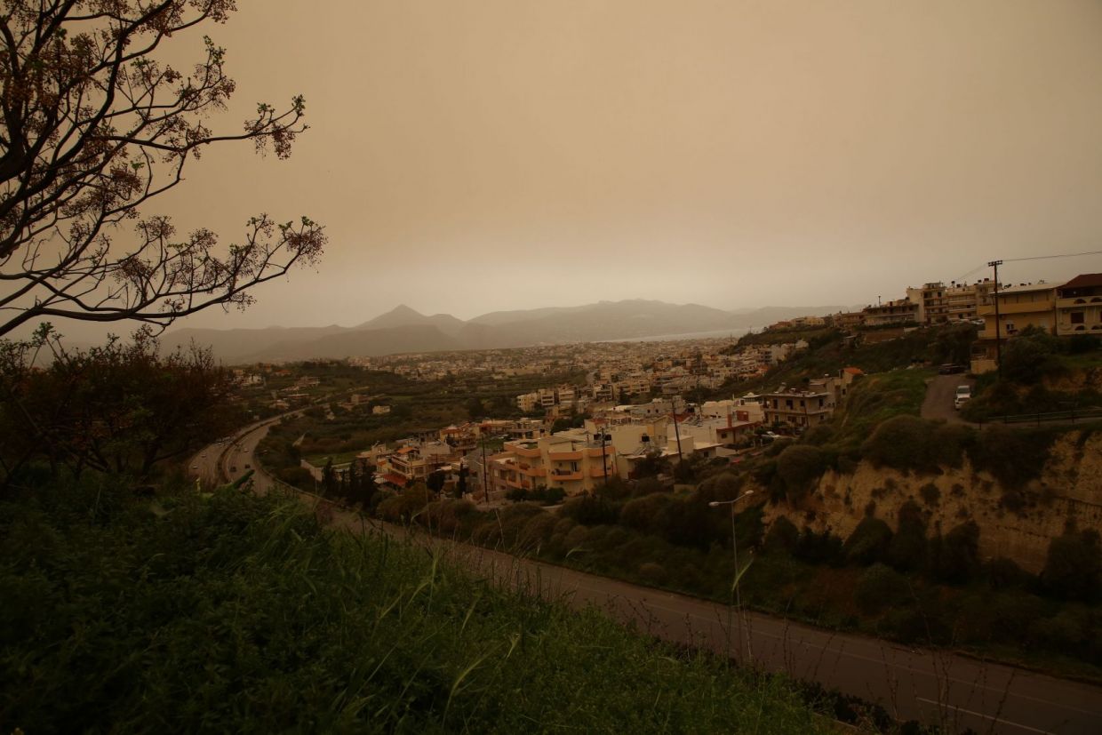 Κορονοϊός και Αφρικανική σκόνη δημιούργησαν απόκοσμες εικόνες στο Ηράκλειο (φώτος)