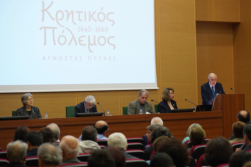 Ξεκίνησε το απόγευμα της Παρασκευής 1ης Νοεμβρίου το Διεθνές Επιστημονικό Συνέδριο «Κρητικός Πόλεμος, 1645 – 1669: Άγνωστες Πτυχές» που διοργανώνουν ο Δήμος Ηρακλείου και η Βικελαία Δημοτική Βιβλιοθήκη, με την συνδιοργάνωση της Περιφέρειας Κρήτης και αφορμή τη συμπλήρωση 350 χρόνων, από την Άλωση του Χάνδακα (1669), από τους Οθωμανούς.