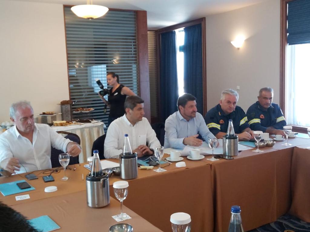 Στη συνέχεια ακολούθησε σύσκεψη με Δημάρχους και Αντιδημάρχους αρμόδιους για θέματα Πολιτικής Προστασίας του Ν. Ηρακλείου, τον πρόεδρο του ΟΑΣΠ κ. Ευθύμιο Λέκκα, παρουσία και στελεχών του Πυροσβεστικού Σώματος.