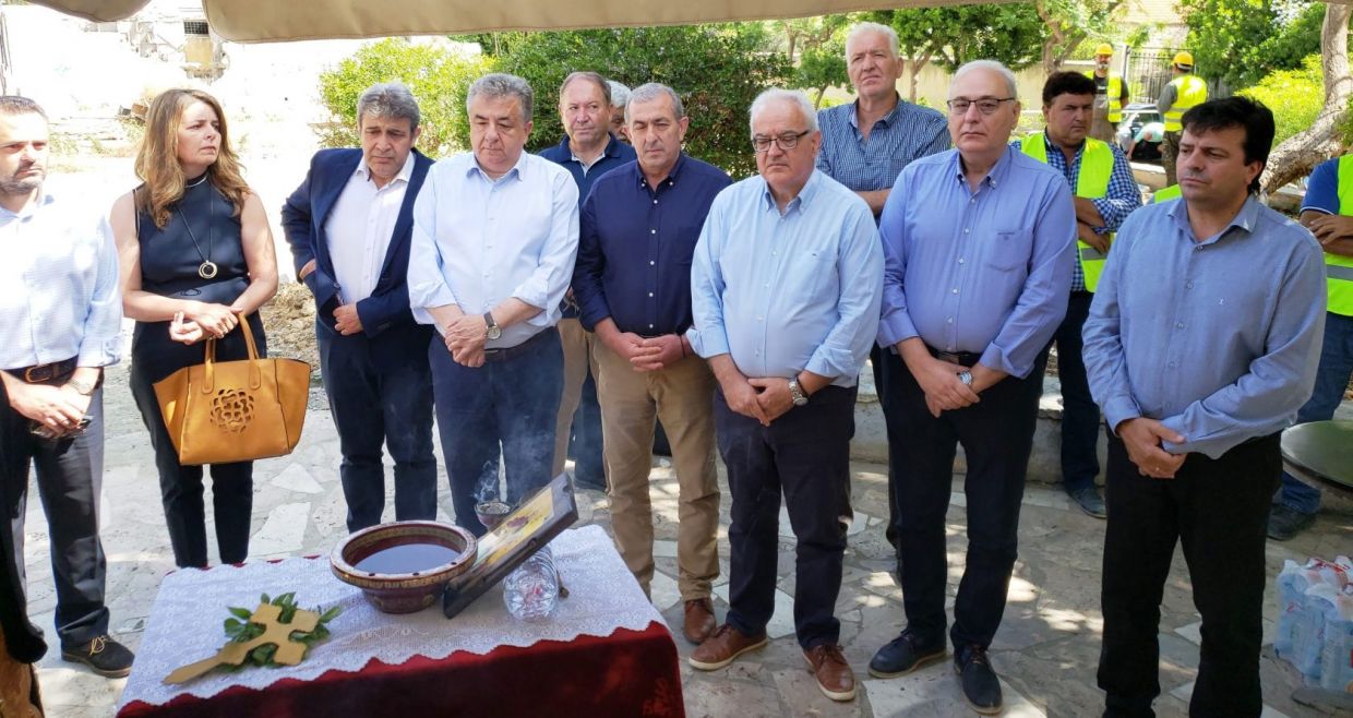 Στο πλαίσιο λιτής εκδήλωσης στη περιοχή, προηγήθηκε Αγιασμός που τέλεσε ο Σεβασμιότατος Αρχιεπίσκοπος Κρήτης κ. Ειρηναίος παρουσία του Περιφερειάρχη Κρήτης, βουλευτών, του Προέδρου του Περιφερειακού Συμβουλίου, Αντιπεριφερειαρχών, Περιφερειακών Συμβούλων, υπηρεσιακών στελεχών των τεχνικών υπηρεσιών της Περιφέρειας, εργαζομένων αλλά και πολιτών.