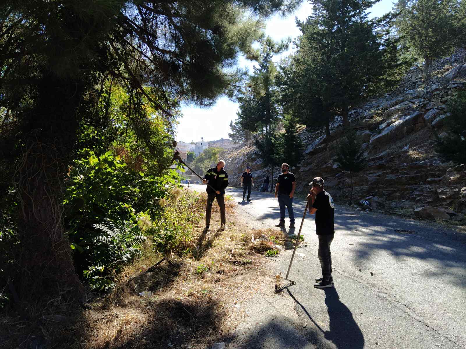 Συγκεκριμένα στην εθελοντική δράση με επικεφαλής τον αρμόδιο Αντιπεριφερειάρχη Πολιτικής Προστασίας Τάσο Κουρουπάκη, και τον Δήμαρχο Ανωγείων Σωκράτη Κεφαλογιάννη, συμμετείχαν μέλη και εθελοντές του Δήμου όλων των ηλικιών, το Εθελοντικό Κλιμάκιο Εκτάκτων Αναγκών Αγυιάς που προχώρησαν σε κομβικής σημασίας καθαρισμούς και κοπές κλαδιών, παρεμβάσεις απαραίτητες για την απρόσκοπτη – χωρίς εμπόδια – πρόσβαση μεγάλων πυροσβεστικών οχημάτων.
