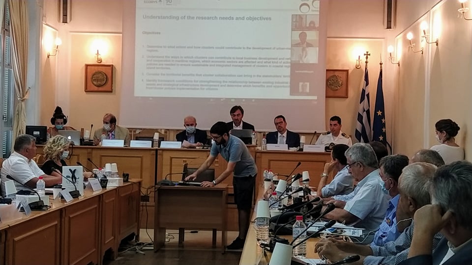 να εγκαινιάσει τη συζήτηση για τον τρόπο ανάπτυξης των κατάλληλων συνεργατικών μηχανισμών τοπικής, διαπεριφερειακής και ευρω-μεσογειακής εμβέλειας, υπό το πλαίσιο της νέας ανάλυσης του Ευρωπαϊκού Πλαισίου Εδαφικής Συνεργασίας ESPON “ERMES-Clusters Θαλάσσιας/Ναυτιλιακής Διακυβέρνησης”