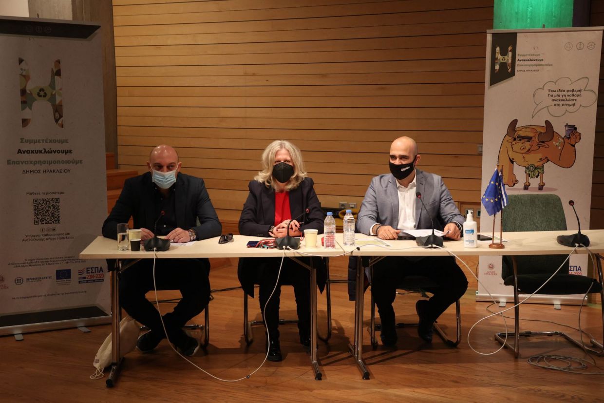 Με μεγάλη επιτυχία πραγματοποιήθηκε η ενημερωτική ημερίδα του Δήμου Ηρακλείου με θέμα «Κοινωνία χωρίς απορρίμματα: Συμμετέχουμε, Ανακυκλώνουμε, Επαναχρησιμοποιούμε» την Τρίτη 14 Δεκεμβρίου, στο Πολιτιστικό Συνεδριακό Κέντρο Ηρακλείου.