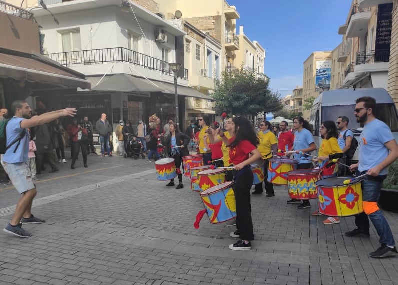 Η έναρξη των εκδηλώσεων πραγματοποιήθηκε από την Ορχήστρα Κρουστών Δρόμου, οι «ΑΝΤΙΚΡΟΥΣΤΟΙ». Ακολούθησαν σύντομες ενημερωτικές ομιλίες από τα στελέχη του Συμβουλευτικού Κέντρου Γυναικών Ηρακλείου και του Ξενώνα Φιλοξενίας Γυναικών Ηρακλείου, σχετικά με τις δομές του Δικτύου της Γενικής Γραμματείας Δημογραφικής και Οικογενειακής Πολιτικής και Ισότητας των Φύλων στο Ηράκλειο.