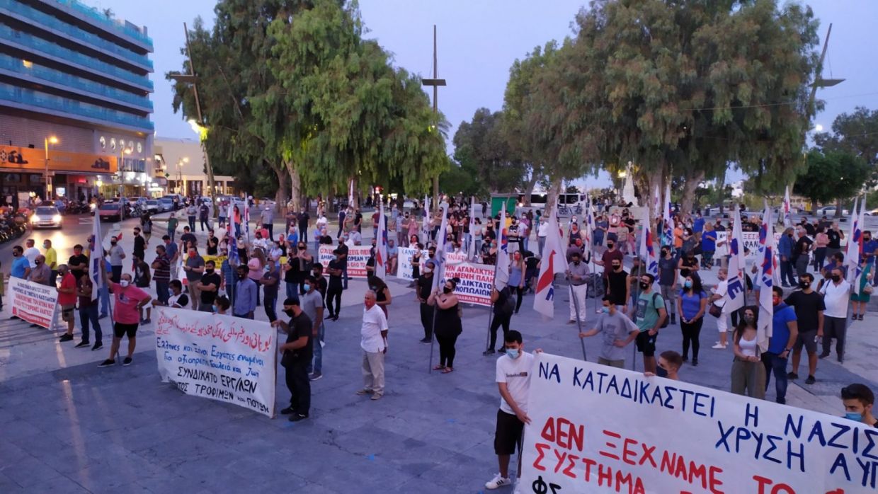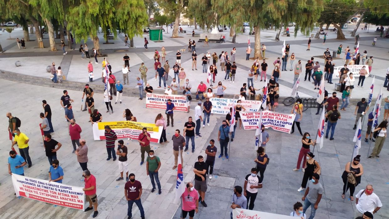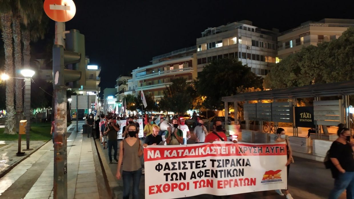 Με επιτυχία ολοκληρώθηκε το συλλαλητήριο των ταξικών συνδικάτων στην Πλατεία Ελευθερίας την Παρασκευή το βράδι ανήμερα και της θλιβερής επετείου της δολοφονίας του αντιφασίστα εργάτη και μουσικού Παύλου Φύσσα από την ναζιστική εγκληματική οργάνωση της Χρυσής Αυγής. Ακούστηκε δυνατά κάτω από τις μάσκες, τηρώντας υποδειγματικά πειθαρχημένα και οργανωμένα όλα τα μέτρα προστασίας και τις αποστάσεις, η φωνή των εργατών του Ηρακλείου. Από νωρίς το απόγευμα, μέλη των συνδικάτων προετοίμαζαν την Πλατεία για τη συγκέντρωση, τοποθετώντας σε κανονικές αποστάσεις χαρτοταινίες-σημάδια ώστε οι διαδηλωτές να στέκονται τηρώντας τα προτεινόμενα μέτρα προστασίας της υγείας τους. Φτάνοντας στις 19:00, καθορισμένη ώρα της συγκέντρωσης, με τα πανό των συνδικάτων στην πλατεία, οι εργάτες έδειξαν πως ξέρουν και μπορούν να οργανώνουν την πάλη τους, να τσακίζουν στην πράξη τις απειλές και την τρομοκρατία του νόμου για την απαγόρευση των διαδηλώσεων, να δίνουν τη δική τους απάντηση στις φωνές που -με πρόσχημα τα έκτακτα μέτρα για την πανδημία- απαιτούν υποταγή των εργατών στις αντεργατικές επιλογές κυβέρνησης και μεγαλοεργοδοσίας.