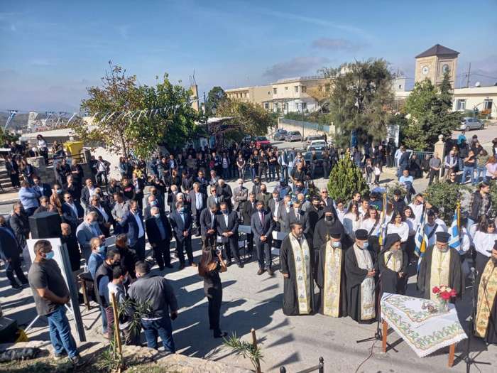 σήμερα συναθροιστήκαμε εδώ για να εορτάσουμε ένα κορυφαίο ιστορικό γεγονός που λαμπρύνει τη νεότερη ιστορία της Ελλάδος, την Επέτειο του Ολοκαυτώματος της Ιεράς Μονής Αρκαδίου από τους Τούρκους κατακτητές τον Νοέμβριο του 1866.