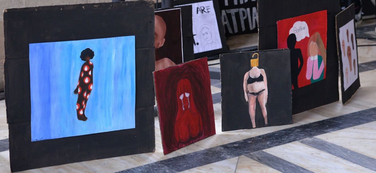 Στα πλαίσια της εκδήλωσης πραγματοποιήθηκε στο αίθριο του Δημοτικού Μεγάρου της Λότζια, δράση τοποθέτησης κόκκινων παπουτσιών και κορνιζών με αφαιρετικά σκίτσα γυναικών, που συμβολίζουν τις δολοφονημένες γυναίκες και φιλοτέχνησε η Εικαστική Ομάδα, του Πολιτιστικού Συλλόγου Καμινίων.