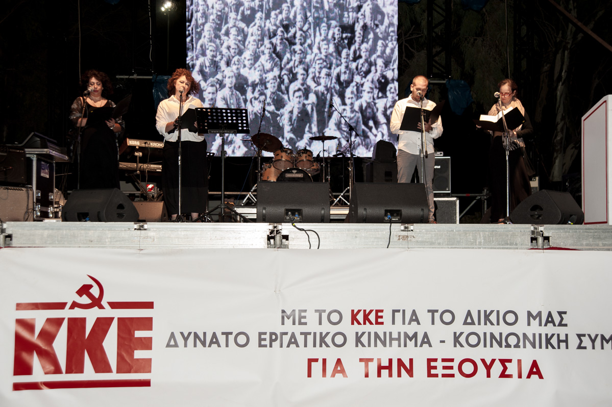 Απ’ αυτό βήμα χαιρετίζουμε την μαζική παρουσία εκατοντάδων νέων στις Φεστιβαλικές εκδηλώσεις που φέτος έχουν μια ιδιαίτερη πλευρά γιορτάζουμε τα 45 χρόνια του Φεστιβάλ της ΚΝΕ του σημαντικότερου πολιτικού-πολιτιστικού θεσμού για την νεολαία αλλά και για όλο το λαό μας.