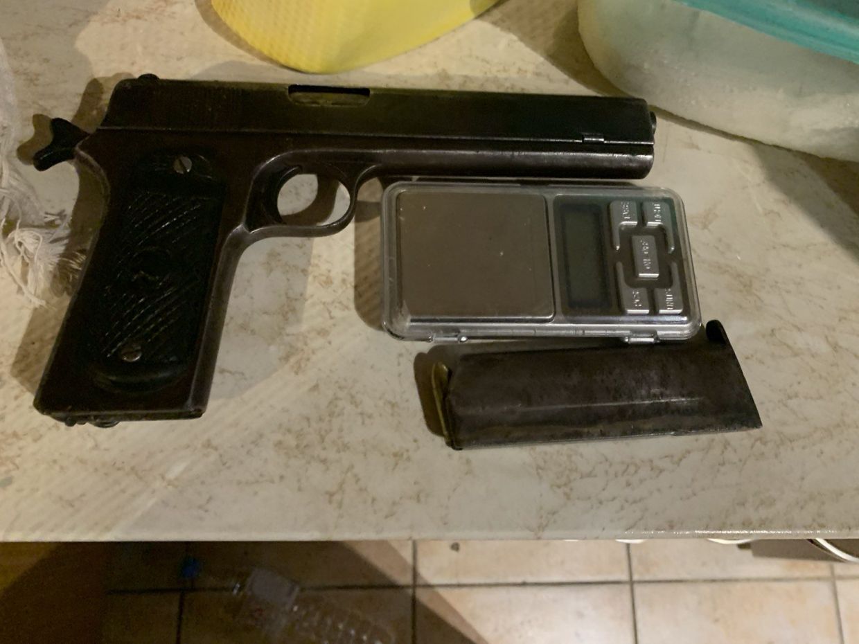 Διενεργήθηκαν έρευνες στις οικίες των ανωτέρω και στο Ι.Χ.Φ αυτοκίνητο, κατά την διάρκεια των οποίων βρέθηκαν και κατασχέθηκαν, πιστόλι, φυσίγγια, 39,16 γραμμάρια τμημάτων δενδρυλλίων κάνναβης, ζυγαριά ακριβείας. Επιπλέον κατασχέθηκαν καλλιεργητικά εργαλεία τα οποία βρέθηκαν στο χώρο της φυτείας.