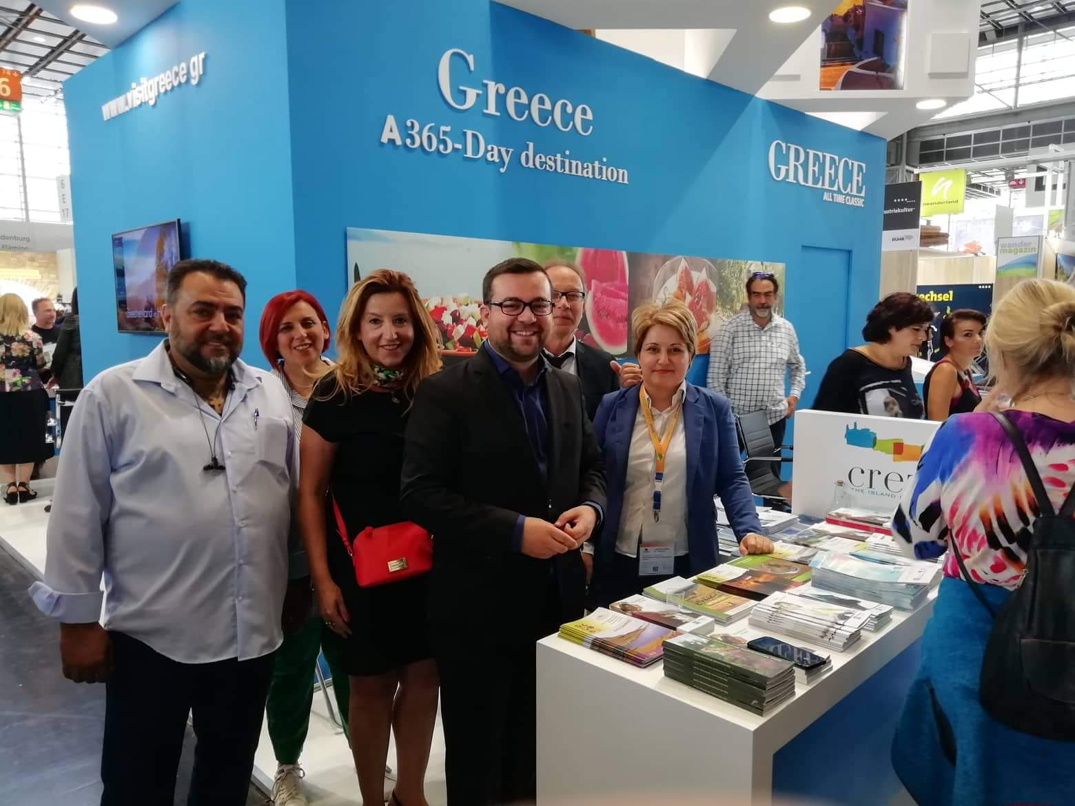 Το Περίπτερο της Περιφέρειας Κρήτης επισκέφτηκε η Γενική Πρόξενος της Ελλάδας στο Ντίσελντορφ κ.Μαρία Παπακωνσταντίνου μαζί με τον πρώτο Έλληνα Δήμαρχο στην πόλη Schwerte της Γερμανίας κ. Δημήτριο Αχουργό, οι οποίοι συνοδεύονταν από την Προϊσταμένη του Γραφείου ΕΟΤ Γερμανίας κ. Βίκυ Στρούμπου . Στους επισκέπτες διανεμήθηκε ενημερωτικό υλικό και πληροφορίες από τους εκπροσώπους της Διεύθυνσης Τουρισμού Αναστασία Στεφανίδου και Μανώλη Μαρκαντωνάκη που αφορούσαν φυσιολατρικές διαδρομές, για τα φυσικά Γεωπάρκα της Κρήτης κ.α. ενώ προσφέρθηκαν παραδοσιακά κεράσματα.