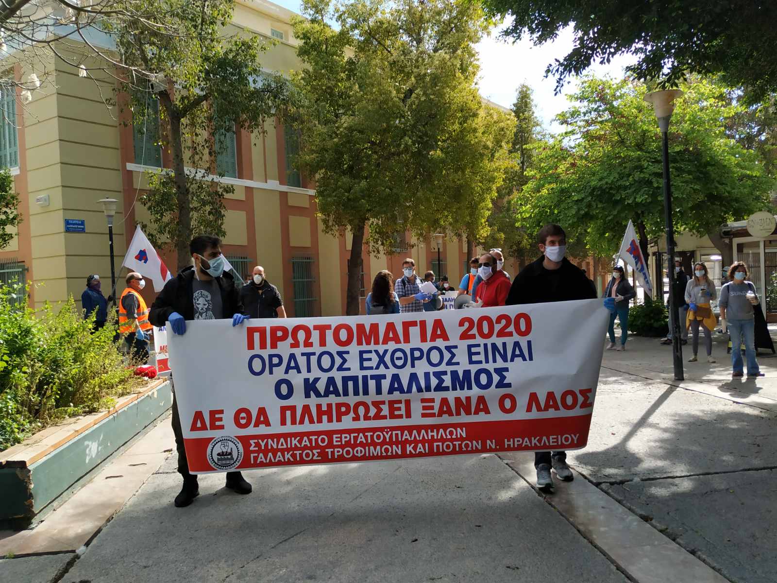 Με το κεντρικό περιεχόμενο της φετινής Πρωτομαγιάς με το σύνθημα «Πρωτομαγιά 2020. Ο ορατός εχθρός είναι ο καπιταλισμός. Δε θα πληρώσει ο λαός!» δόθηκε περήφανη απάντηση στα μονοπώλια και τους υπηρέτες τους, που συντρίβουν τη ζωή μας.