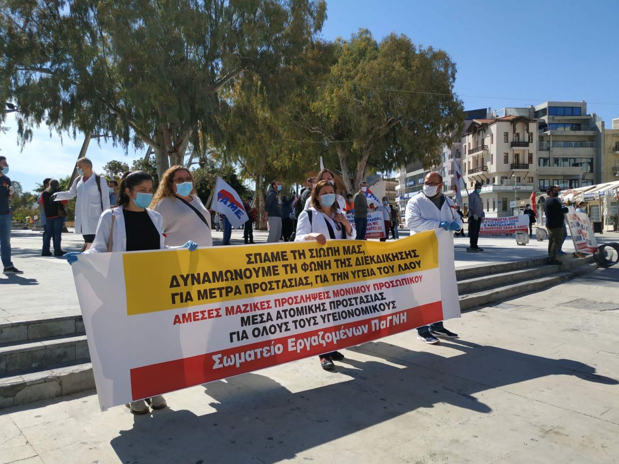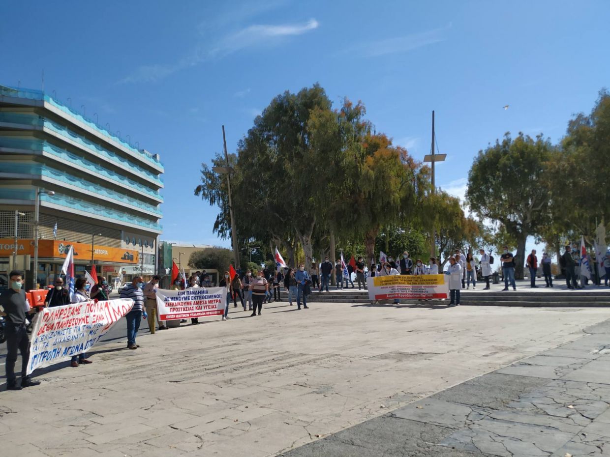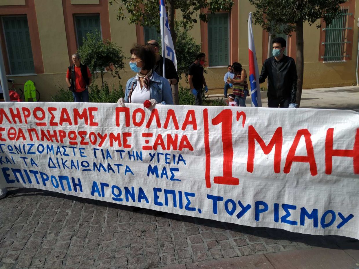 Τα σωματεία πραγματοποίησαν την πρωτομαγιάτικη εκδήλωση με αυστηρή τήρηση των μέτρων προστασίας της υγείας, χρησιμοποιώντας γάντια και μάσκες, καθώς και διατηρώντας τις απαραίτητες αποστάσεις μεταξύ των συμμετεχόντων.